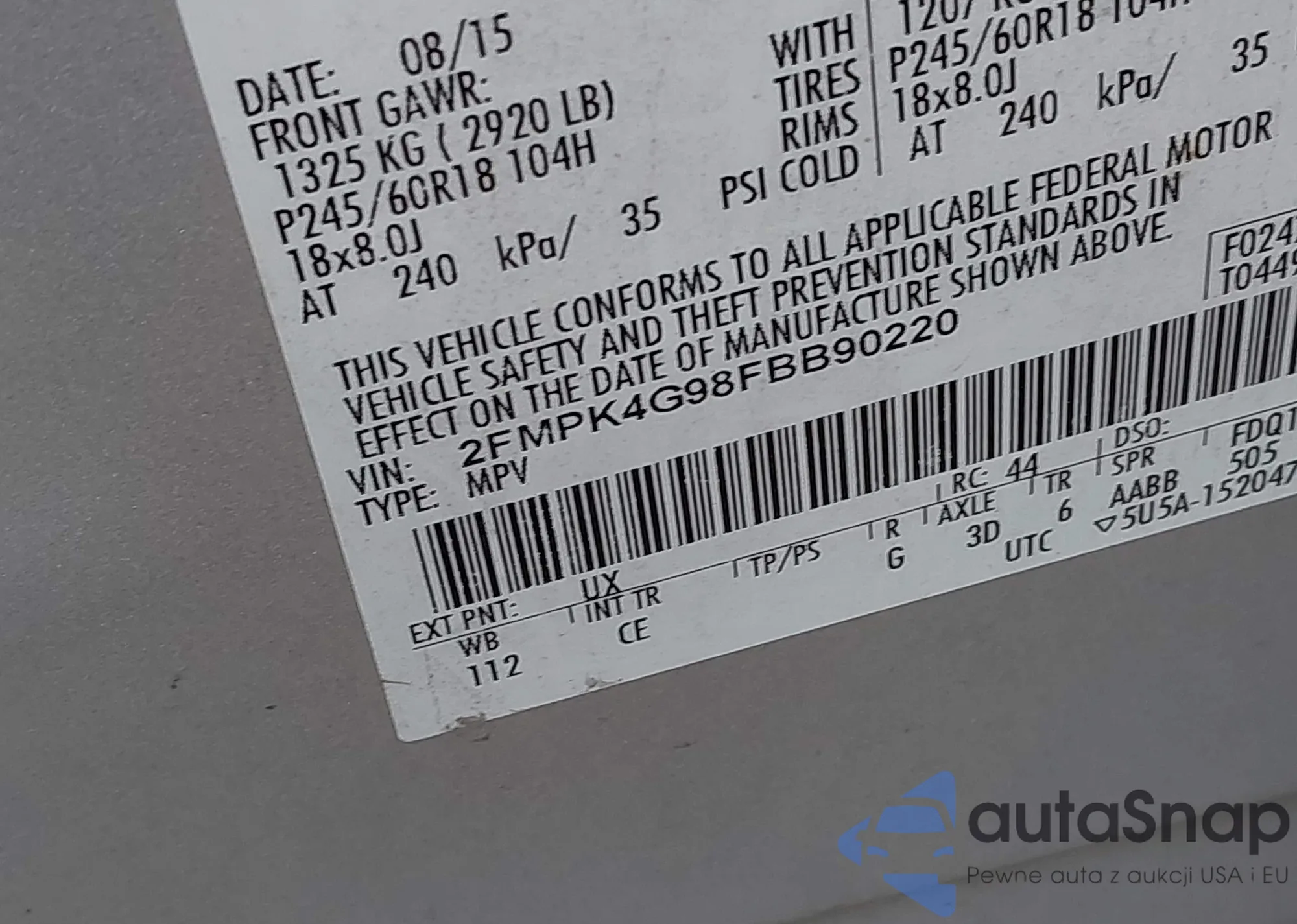 • VIN 2FMPK4G98FBB90220