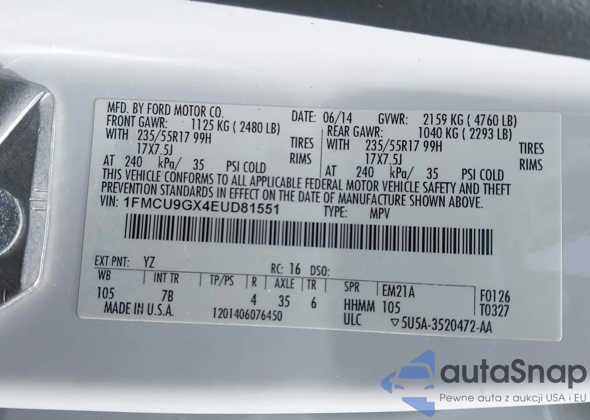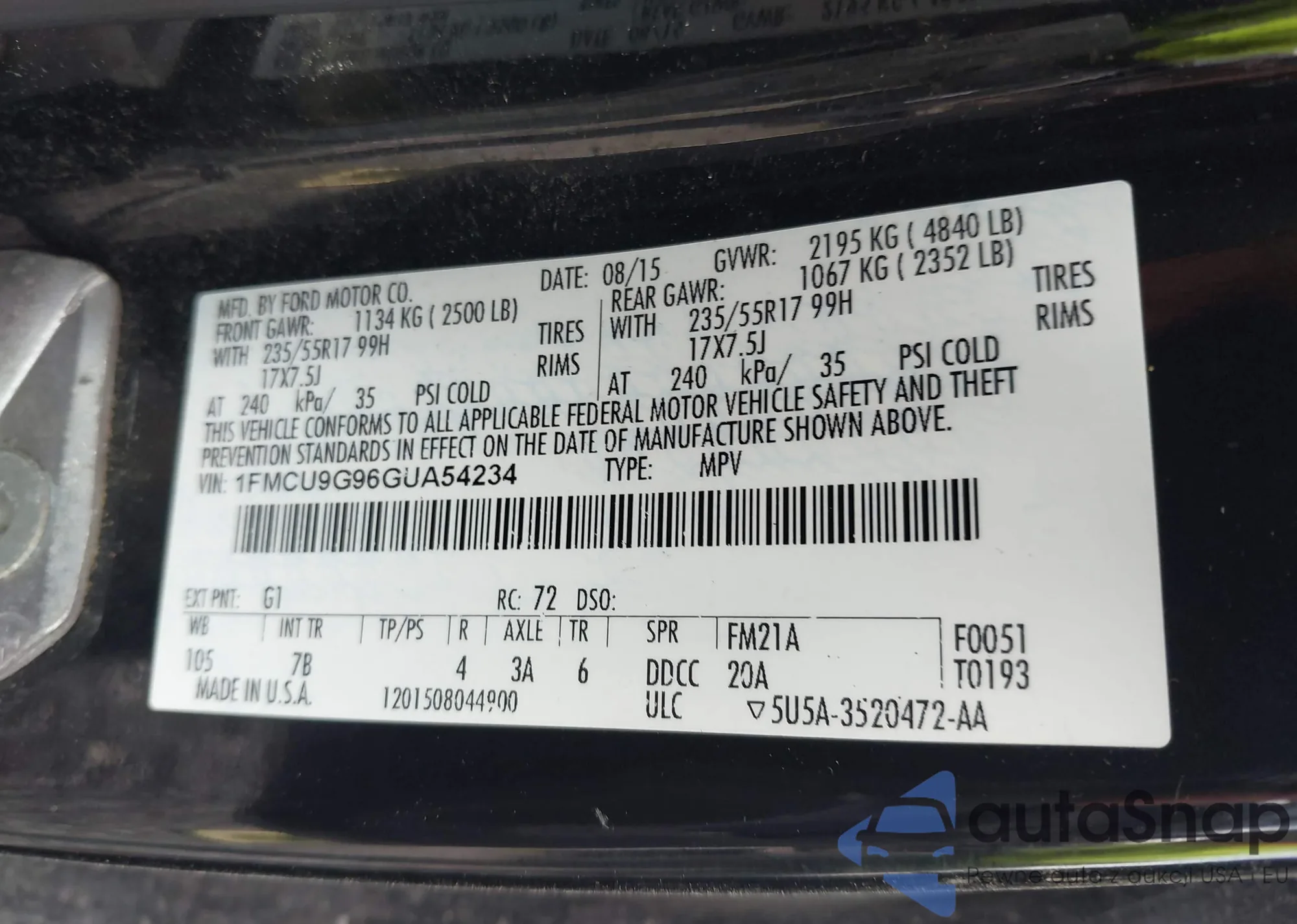 • VIN 1FMCU0GX5DUA85464
