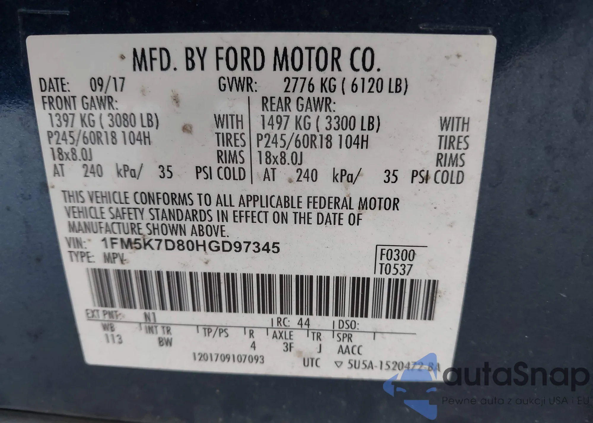 LOT: 42537580 VIN: 1FMCU9J93GUA62977