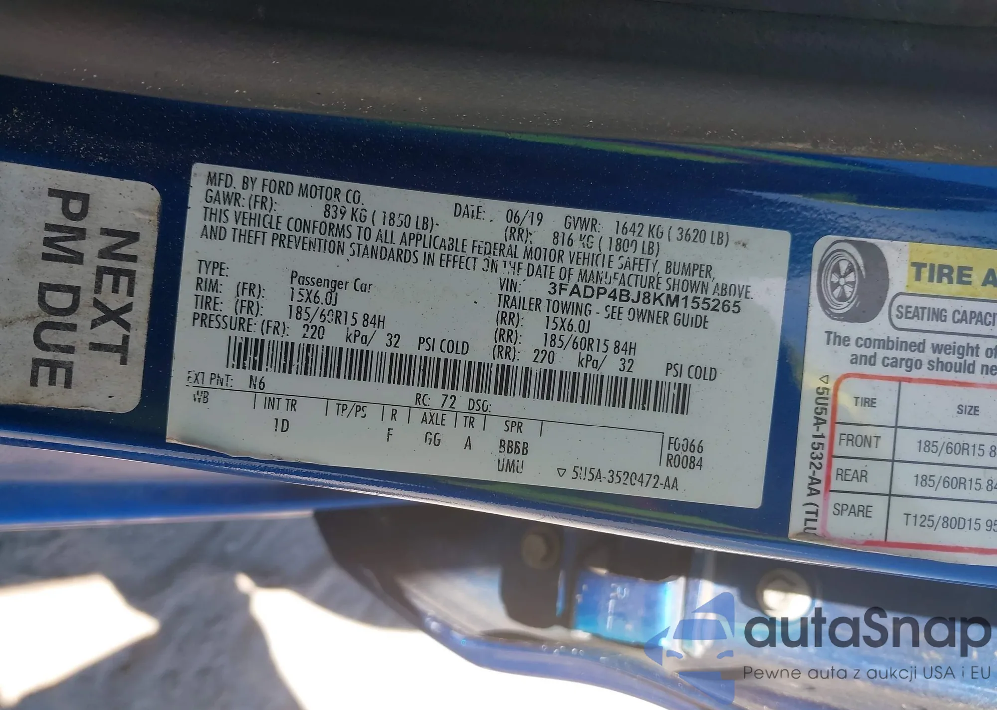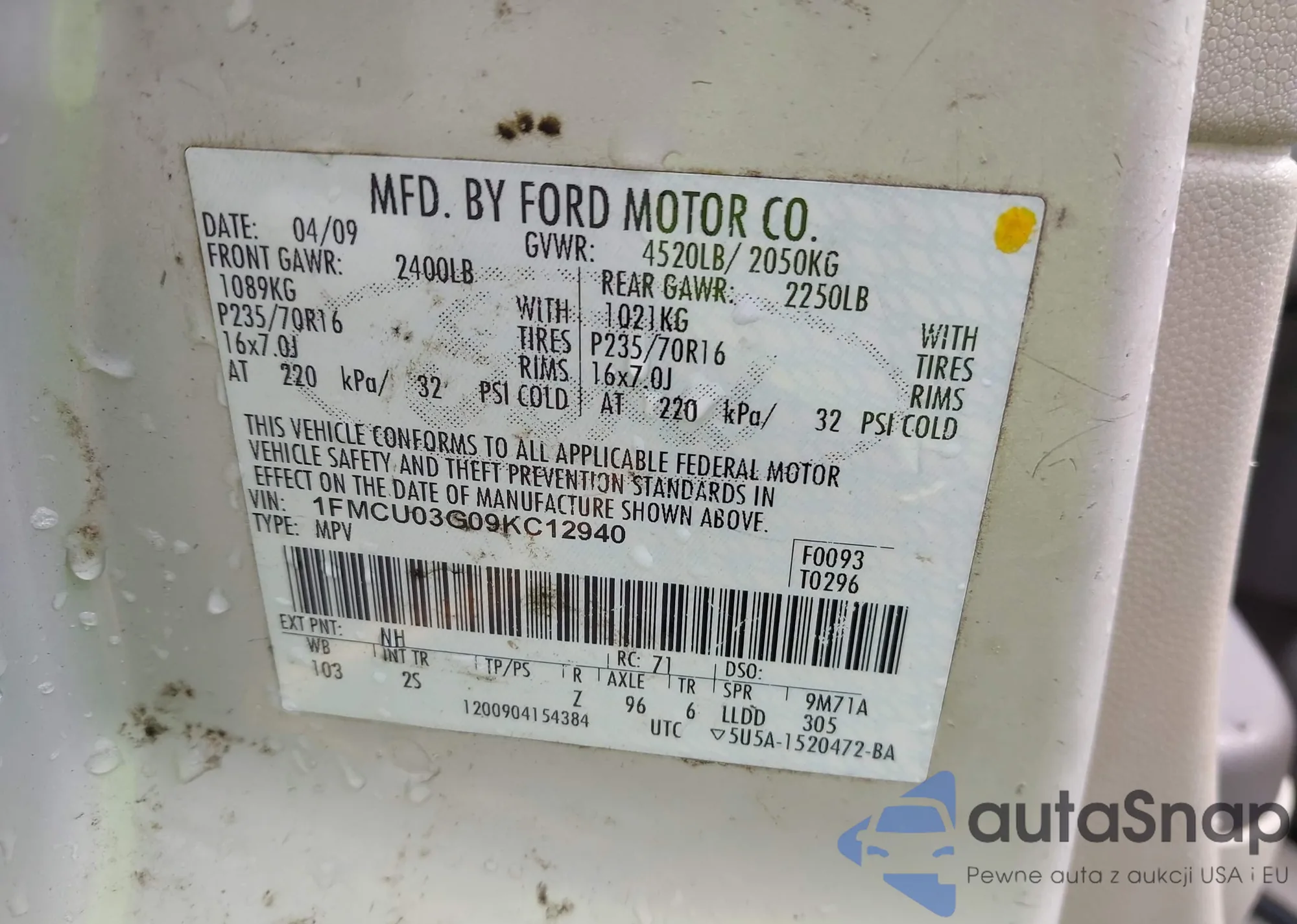 LOT: 42651408 VIN: 1FMCU03G79KC81611