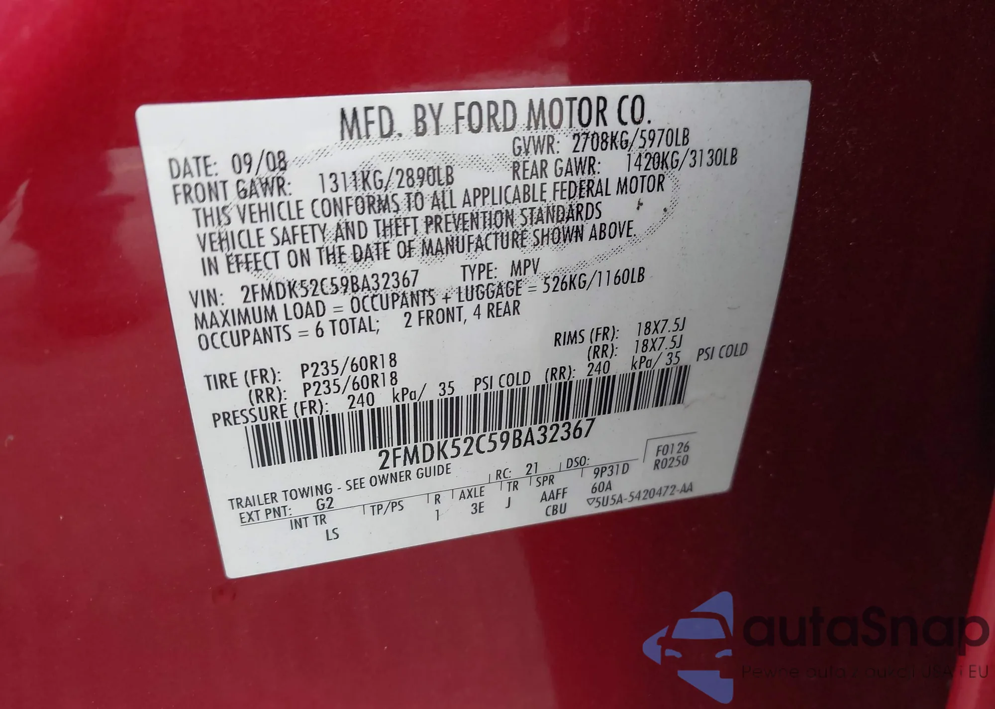 LOT: 42597492 VIN: 2FMDK52C59BA32367