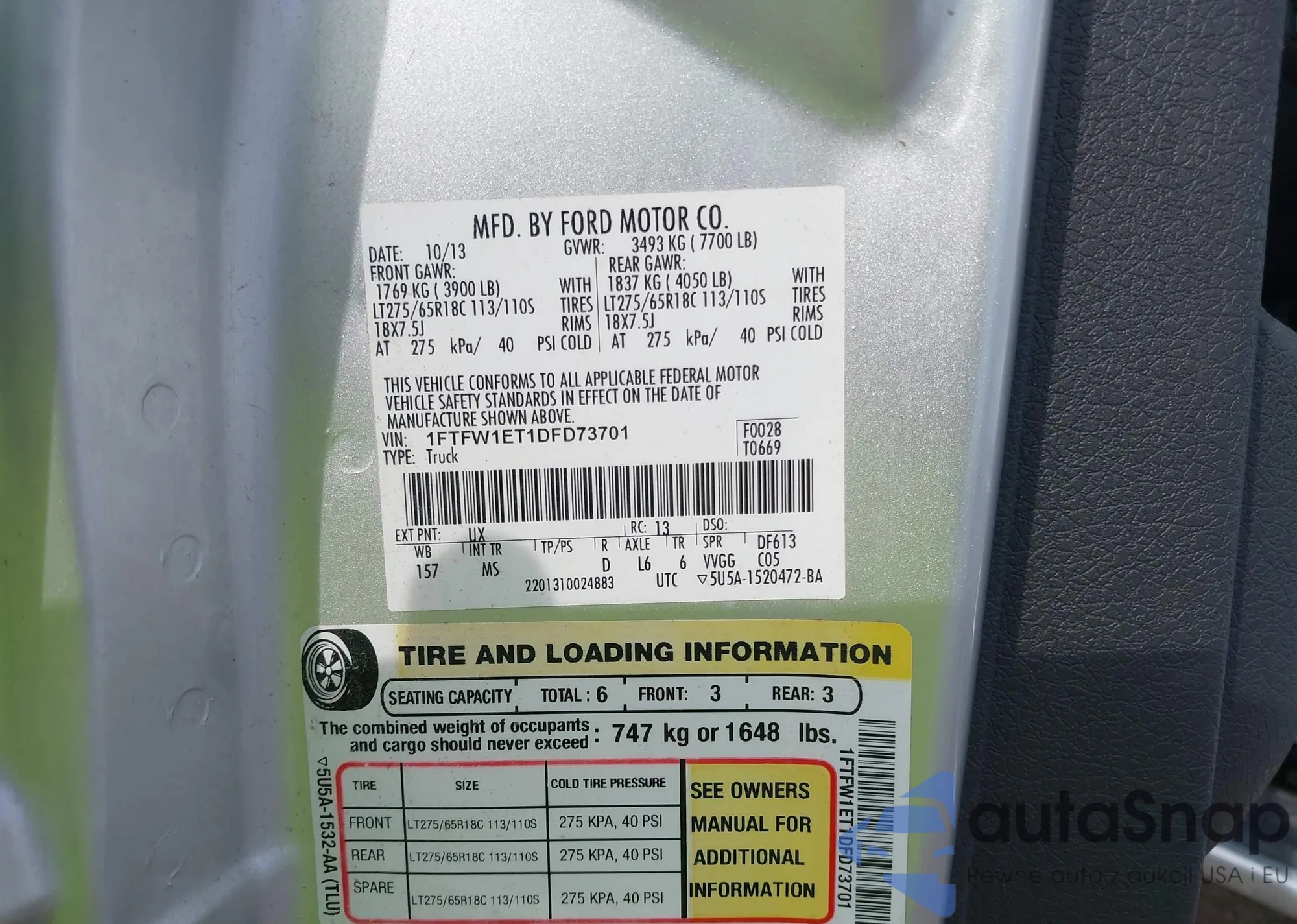 LOT: 42770544 VIN: 1FTFW1ET1DFD73701