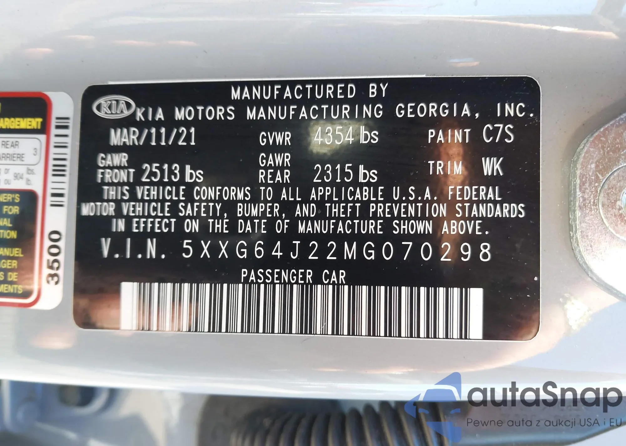 • VIN 5XXG64J22MG070298