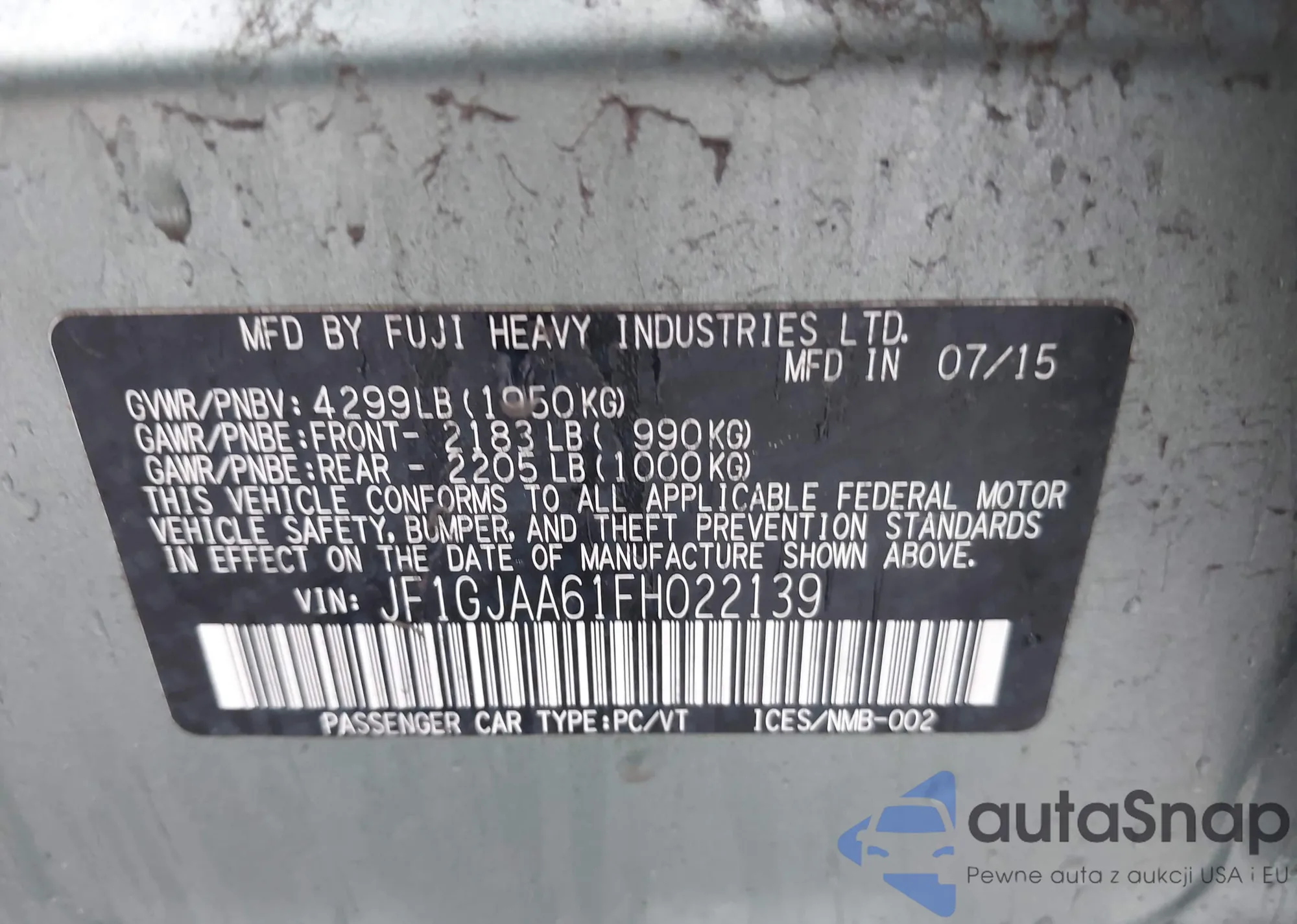 LOT: 42226883 VIN: JF1GJAA61FH022139