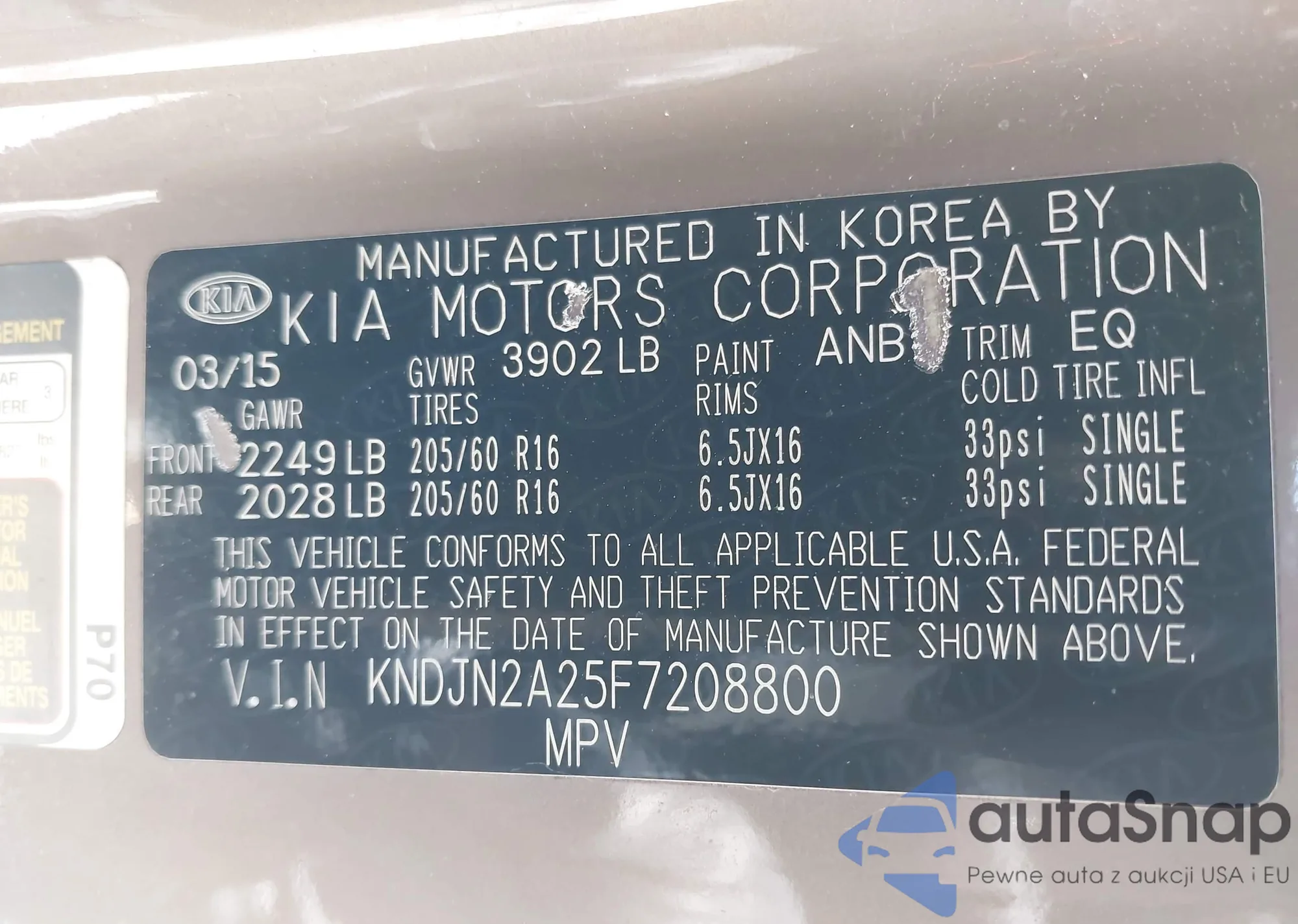 LOT: 42319998 VIN: KNAFK4A66F5404962