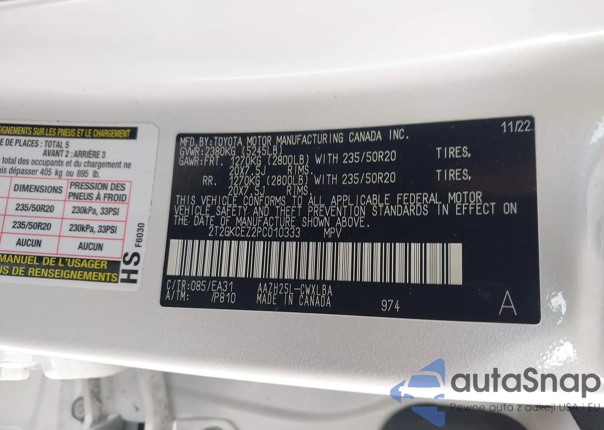 • VIN 2T2GKCEZ2PC010333