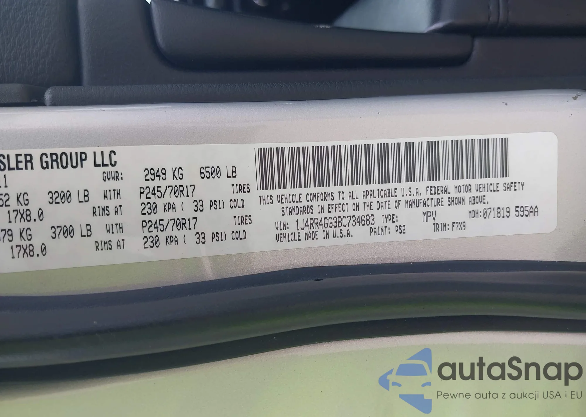 • VIN 1J4RR4GG3BC734683