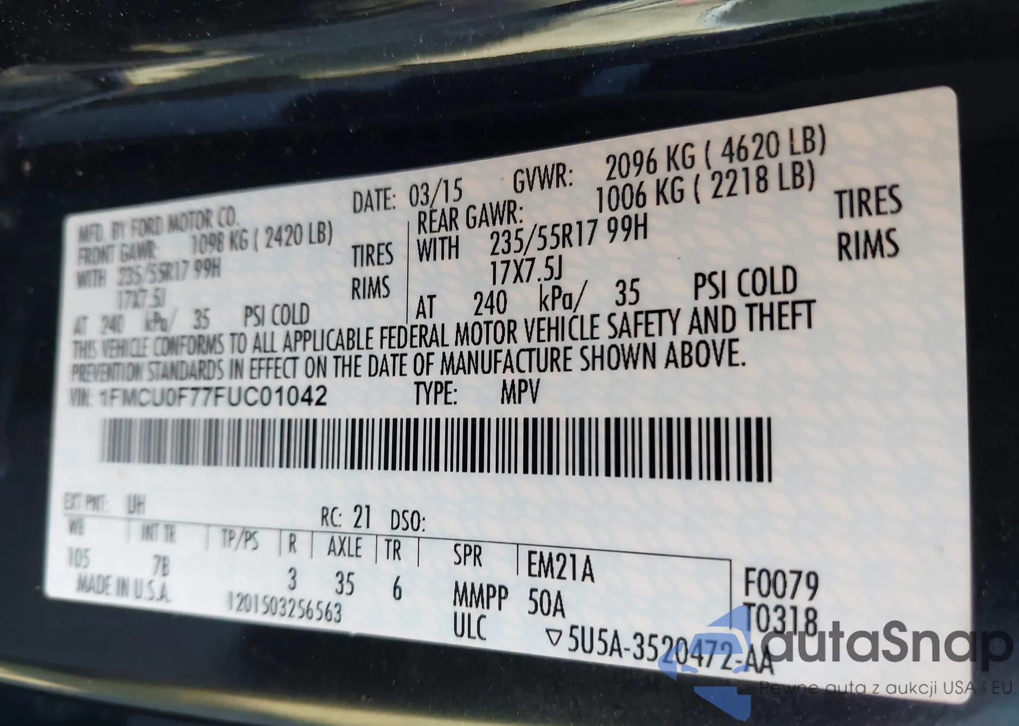• VIN 1FMCU0F77FUC01042