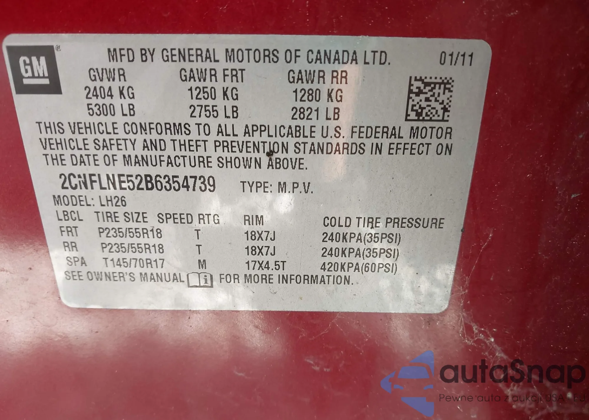 LOT: 42009529 VIN: 2CNFLNE52B6354739