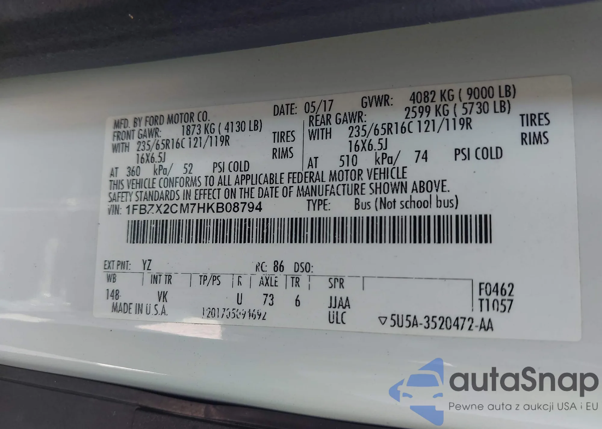 • VIN 1FBZX2CM7HKB08794