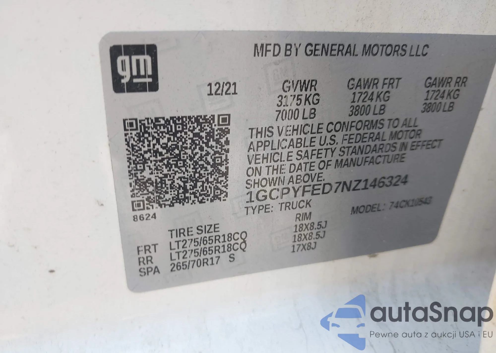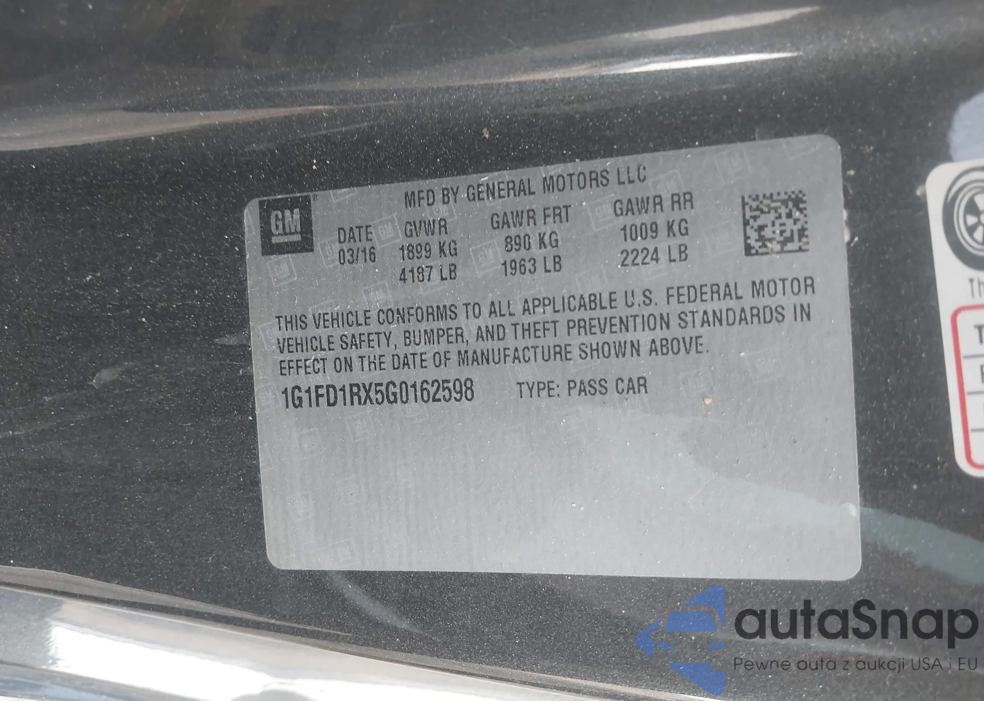 LOT: 42402226 VIN: 1G1FD1RX5G0162598