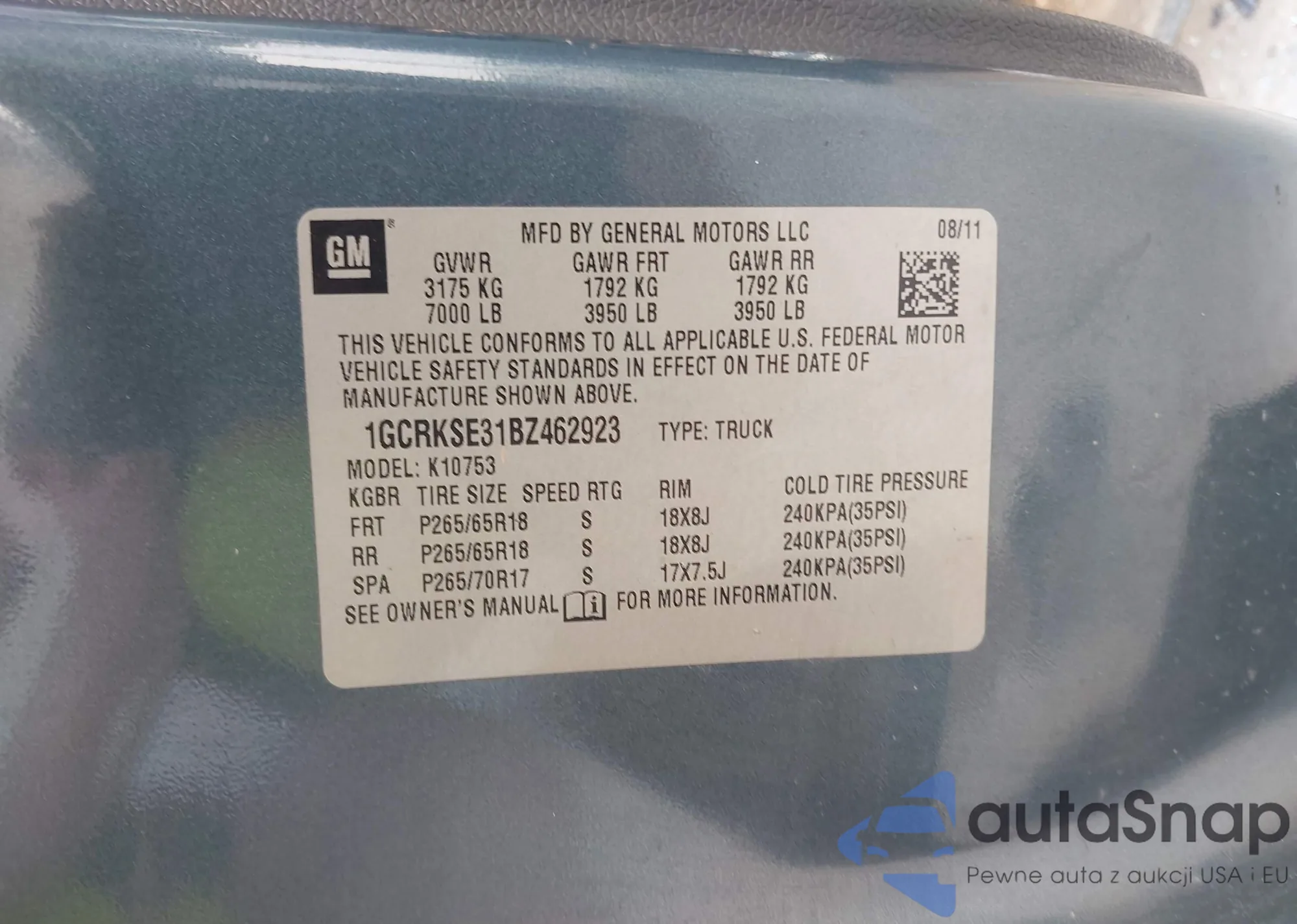 • VIN 1GCRKSE31BZ462923