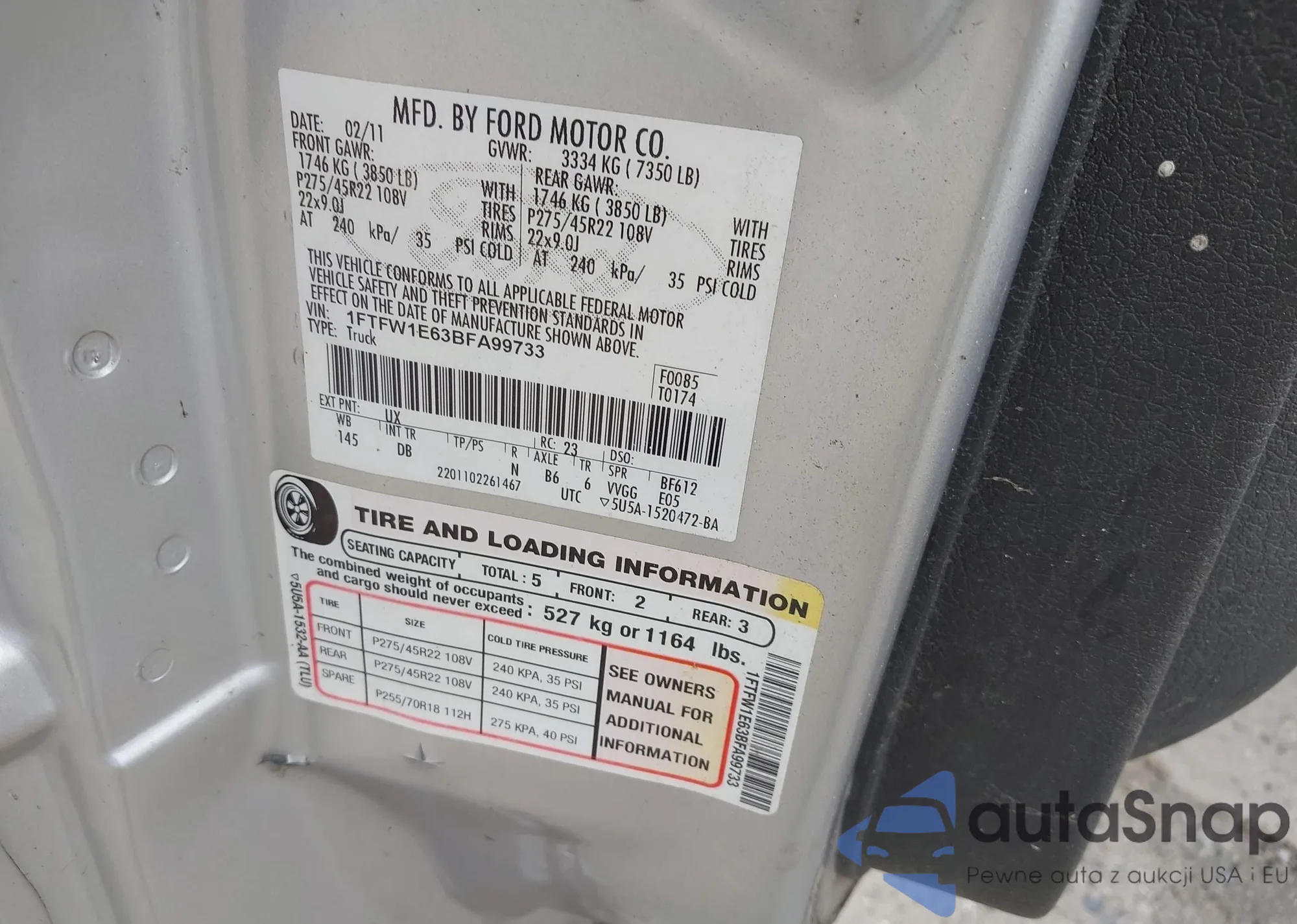 LOT: 42435156 VIN: 1FTFW1E63BFA99733