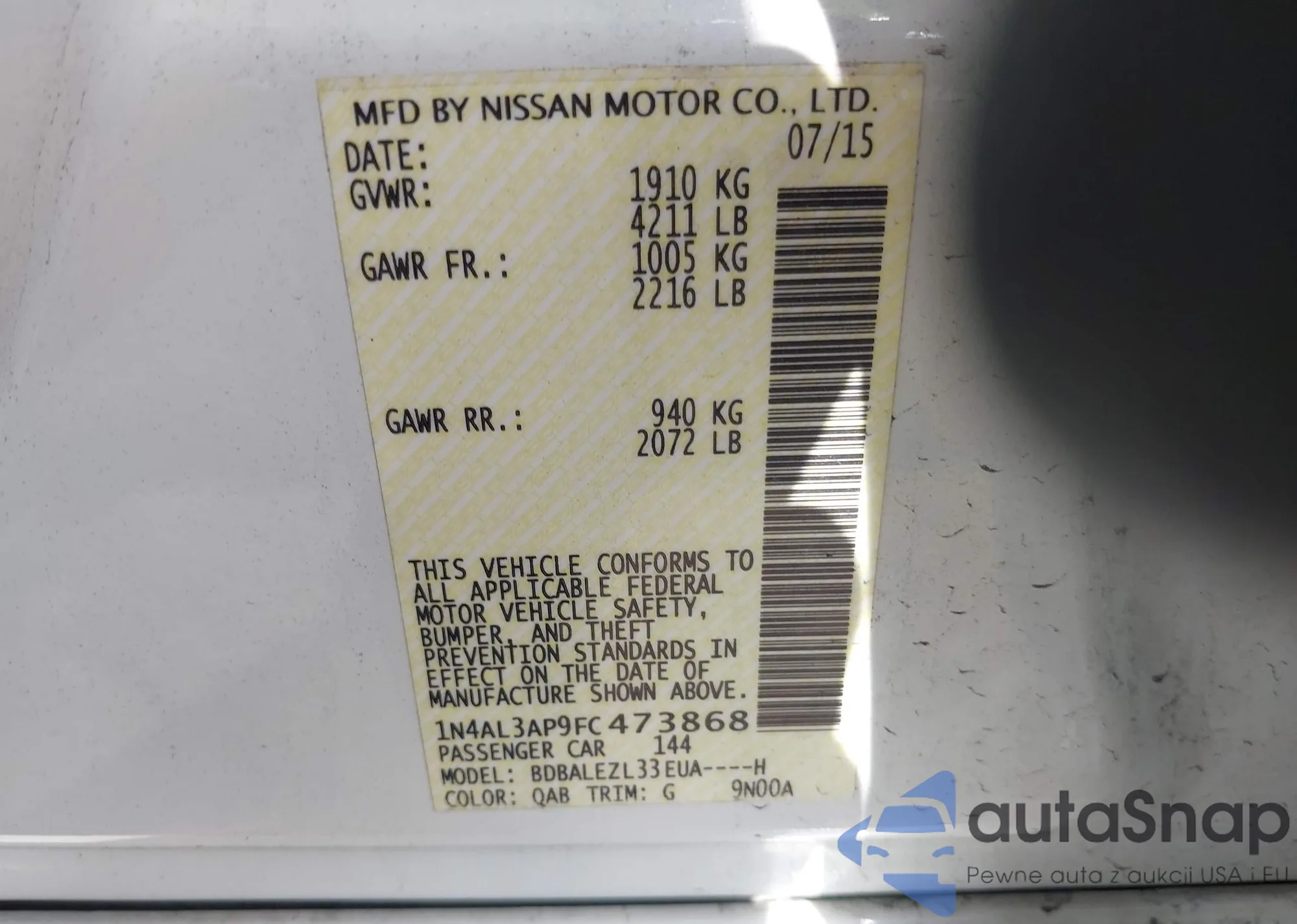 LOT: 42681749 VIN: 1N4AL3AP9FC473868