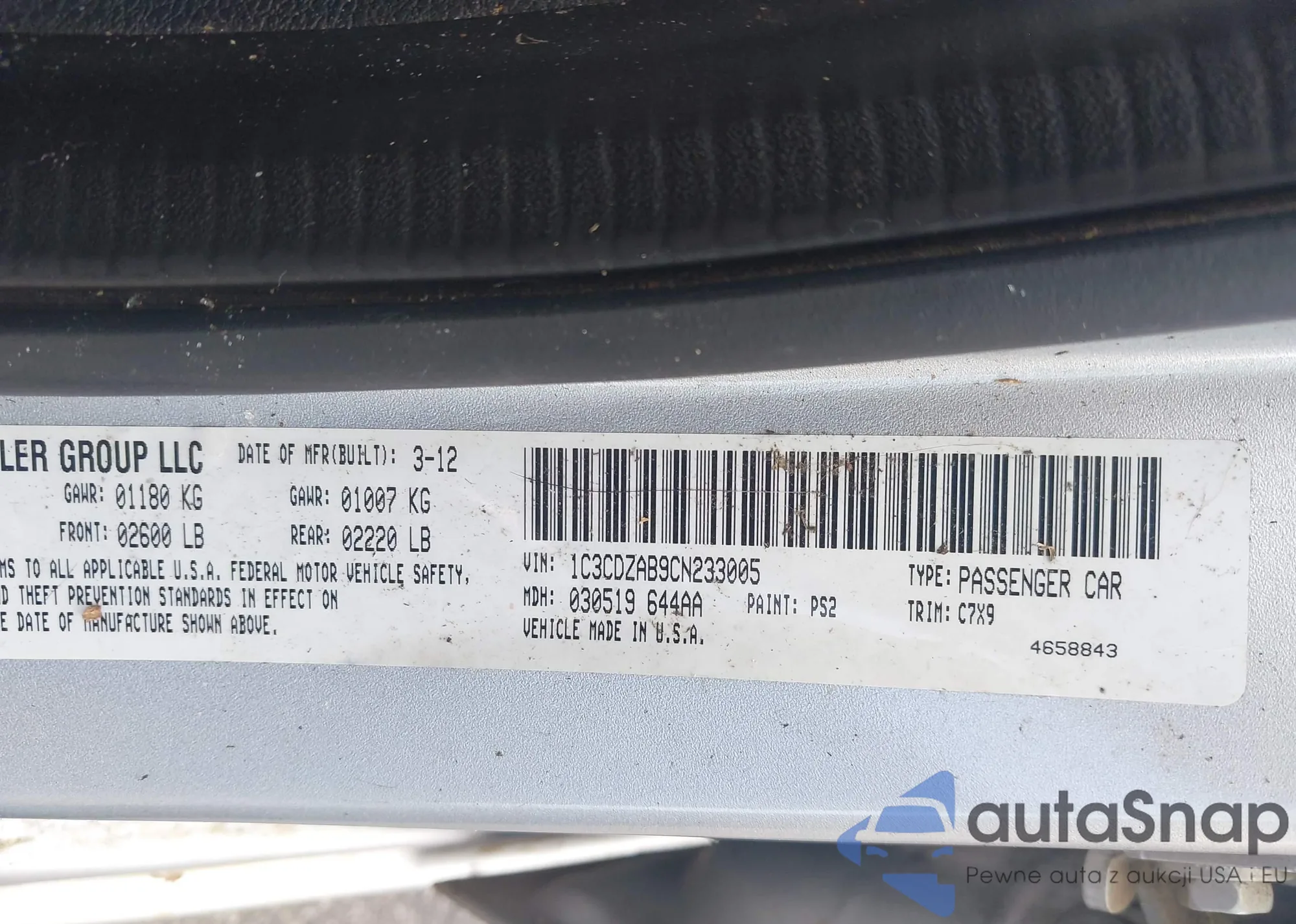 • VIN 2C3CDXAT3MH578330