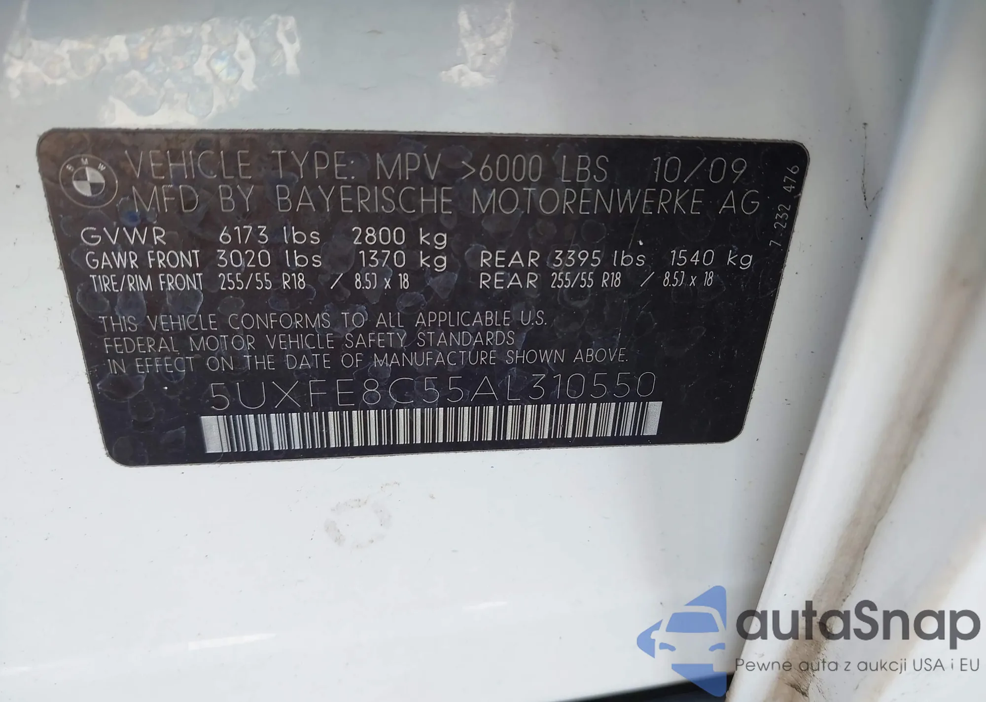 • VIN 5UXFE8C55AL310550