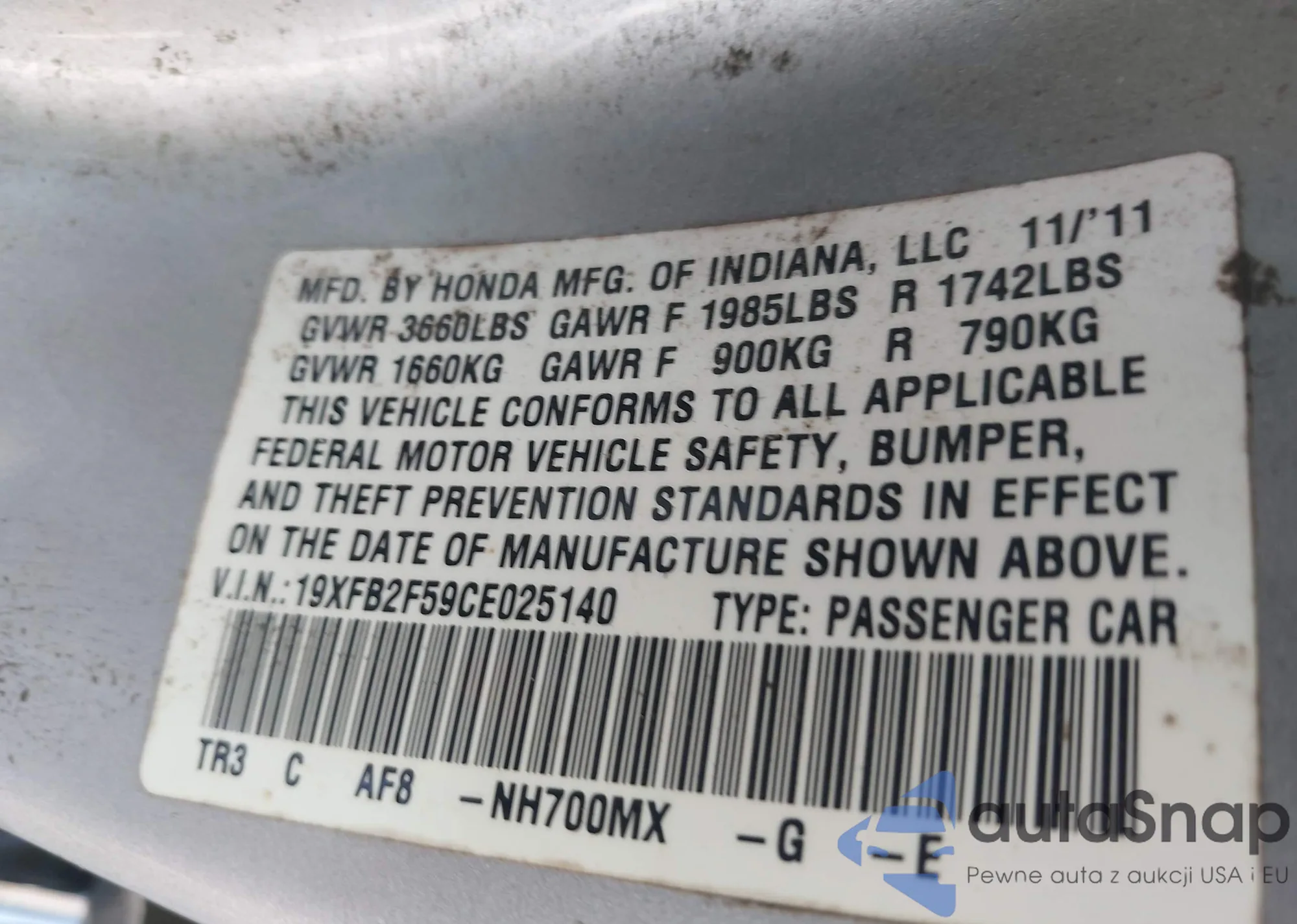 • VIN 19XFB2F59CE025140