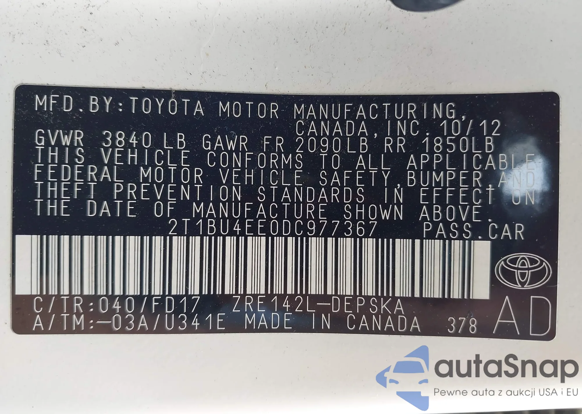 LOT: 42504726 VIN: 2T1BURHE4HC822304