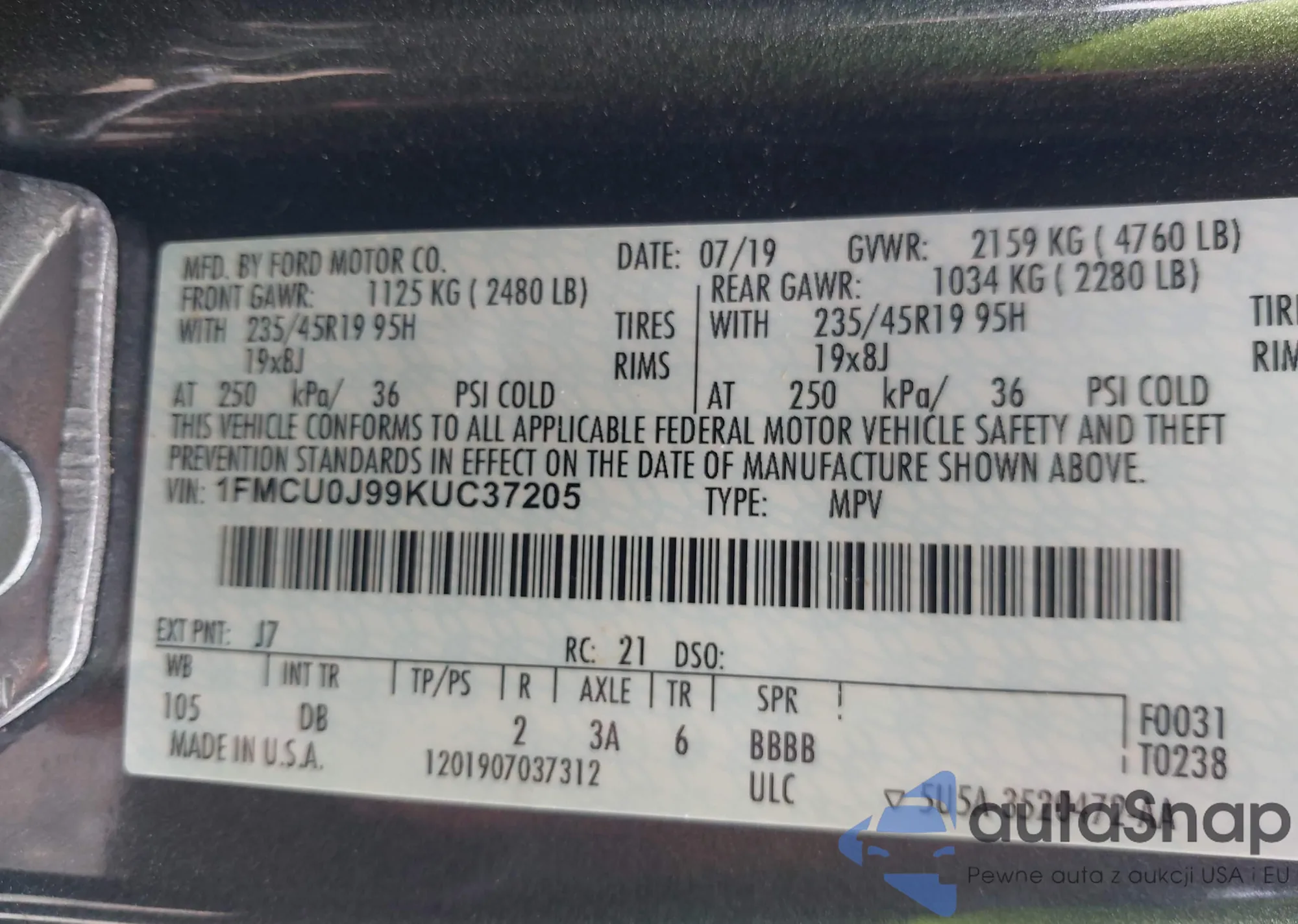 • VIN 1FMCU0J99KUC37205