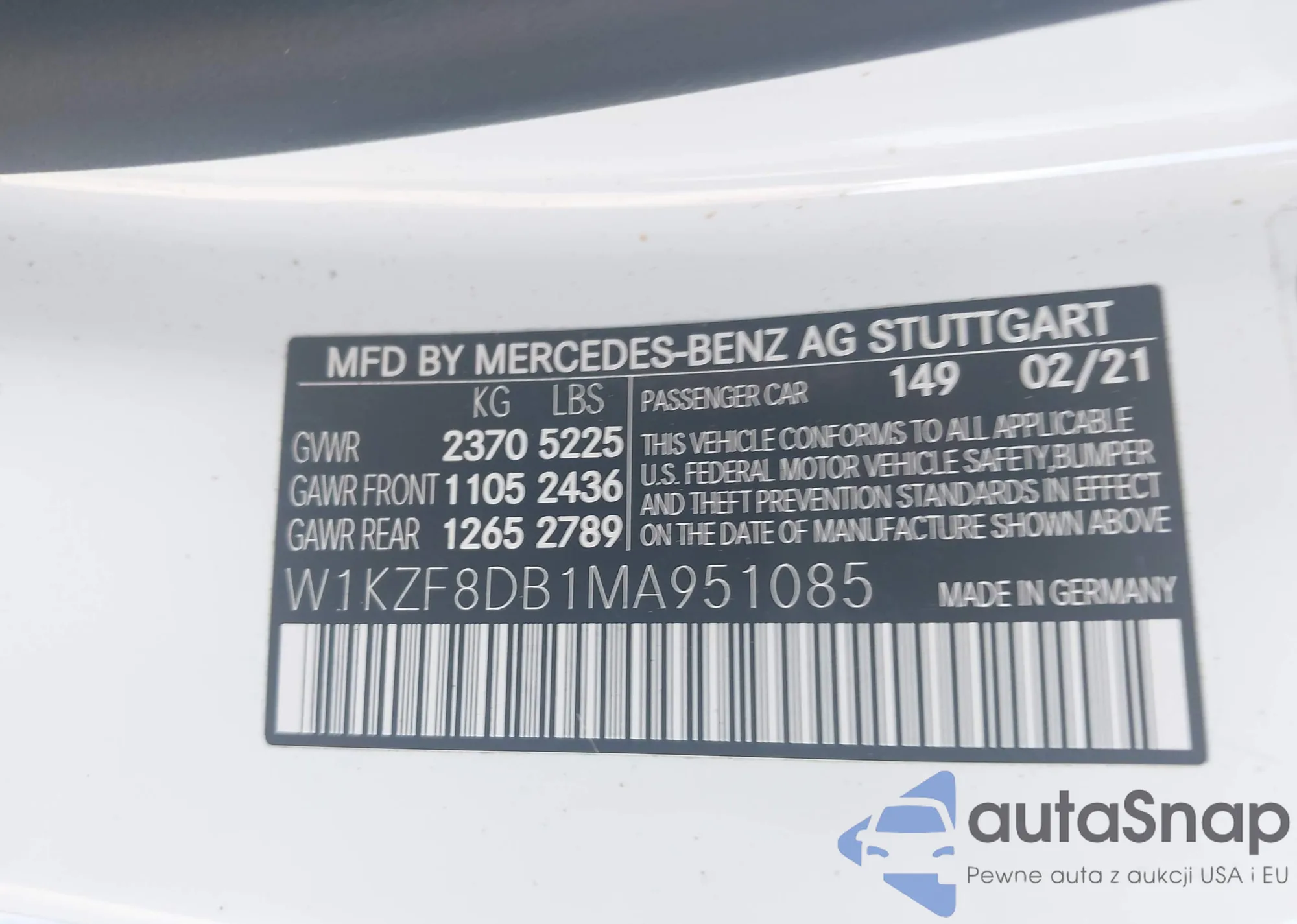 LOT: 42549555 VIN: W1KZF8DB1MA951085