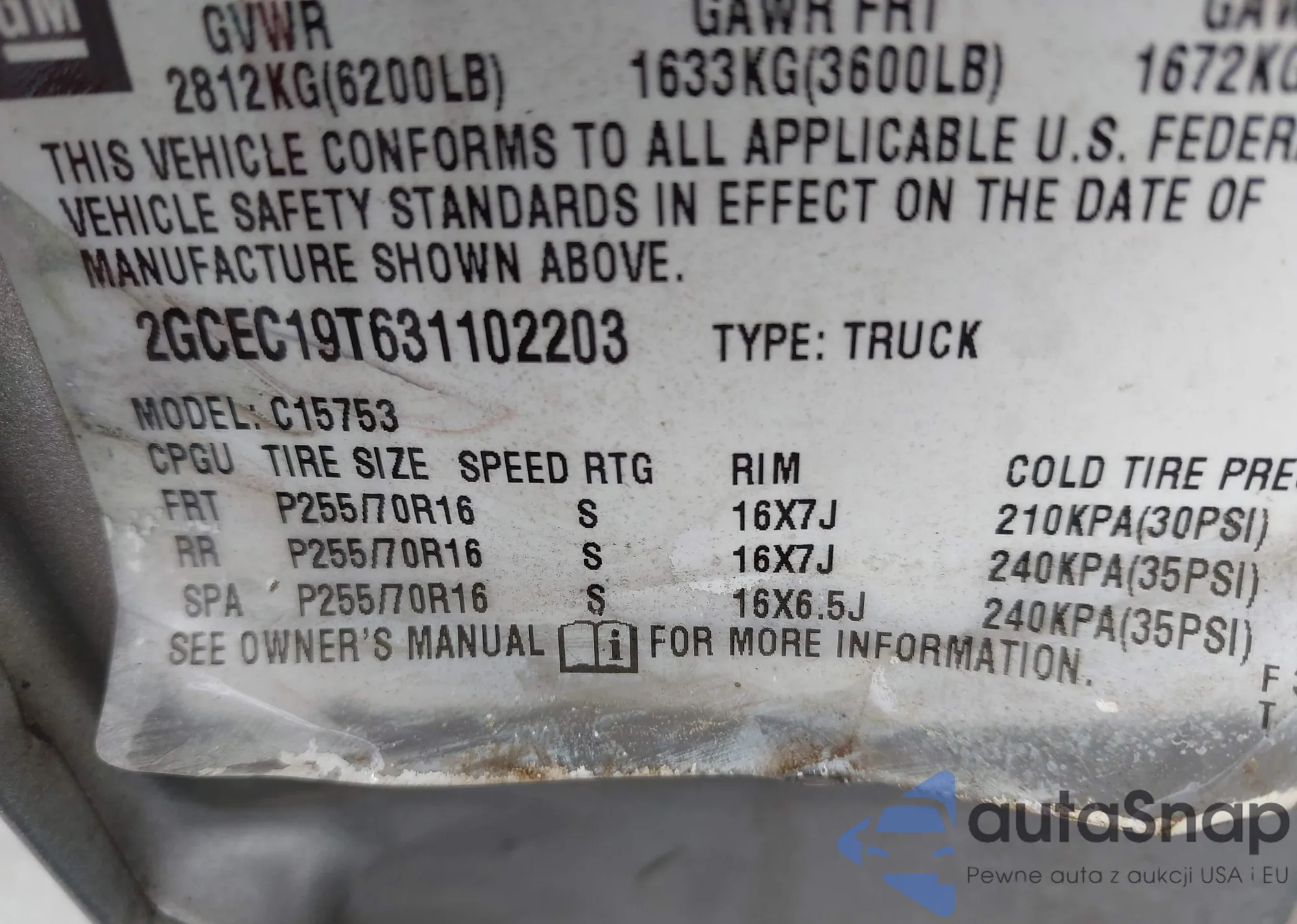 • VIN 2GCEC19T631102203