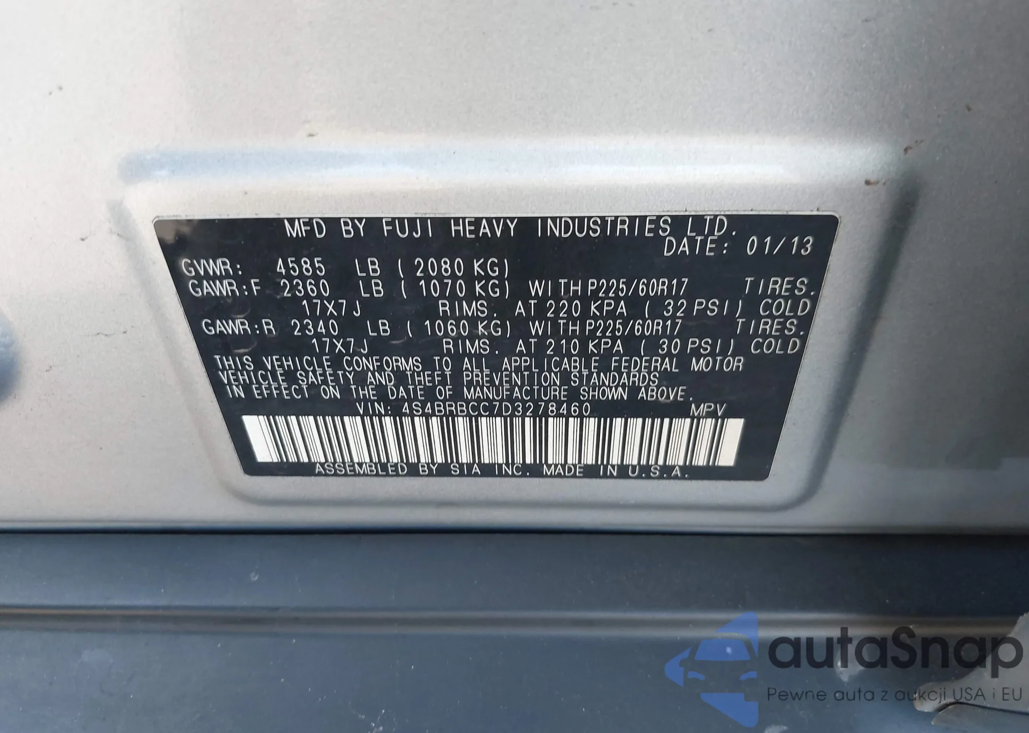 • VIN 4S4BRBCC7D3278460