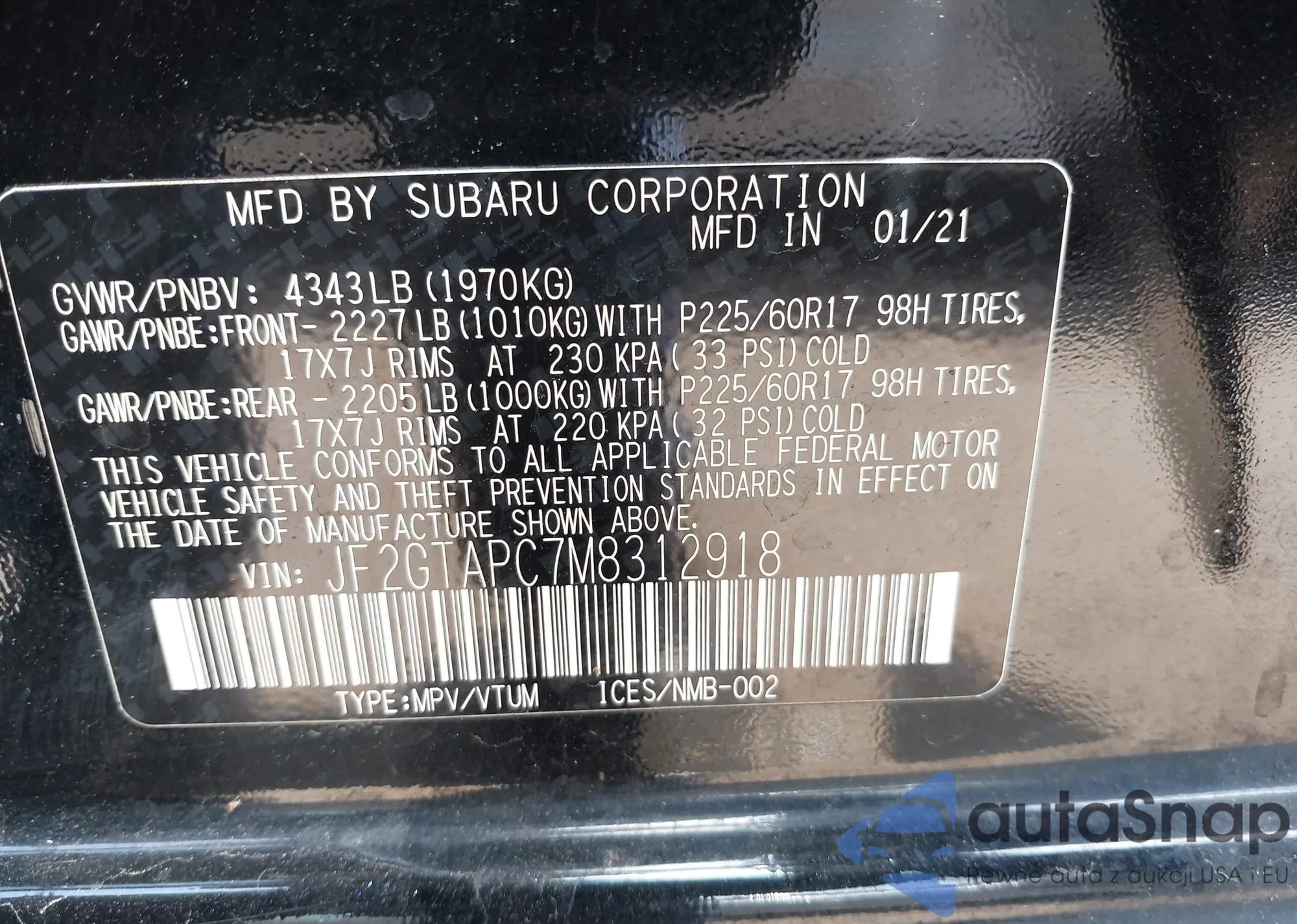 • VIN JF2GTAPC7M8312918