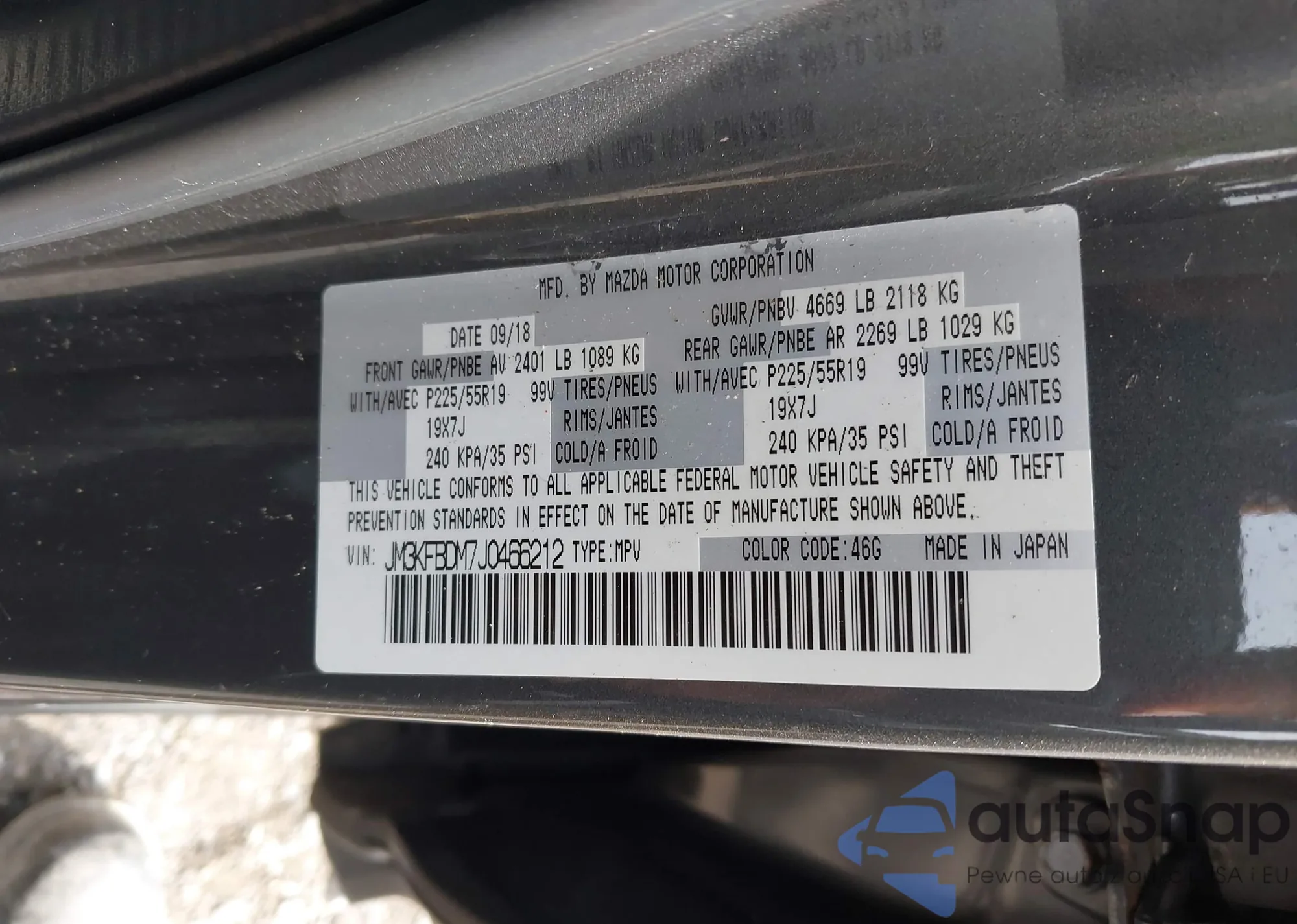 • VIN JM3KFBDM7J0466212