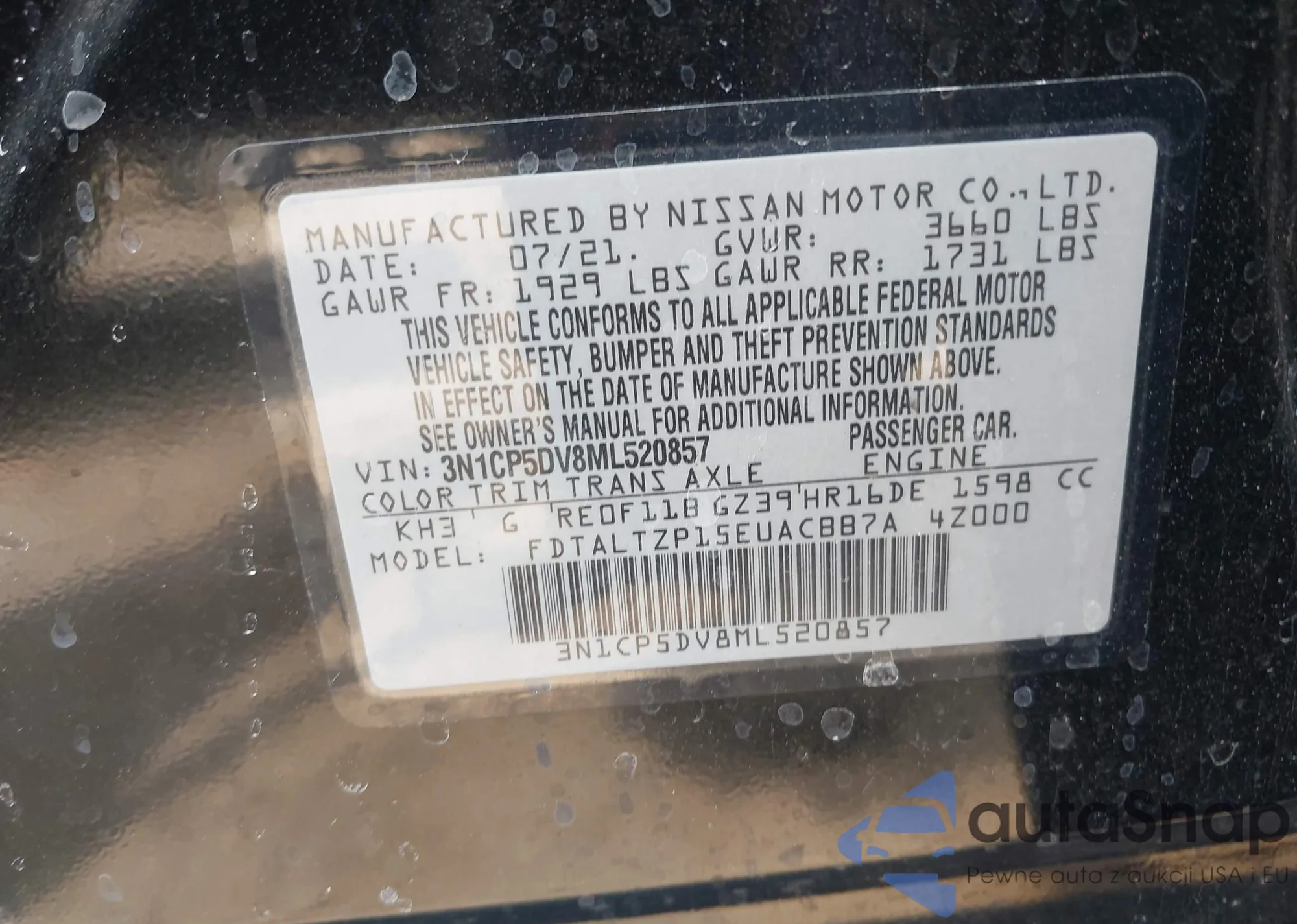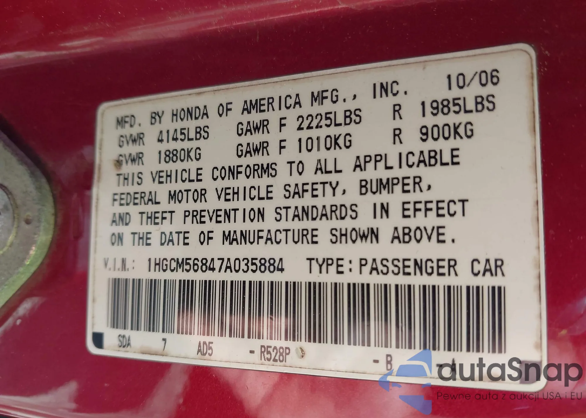 • VIN 5J6RW1H50ML005919