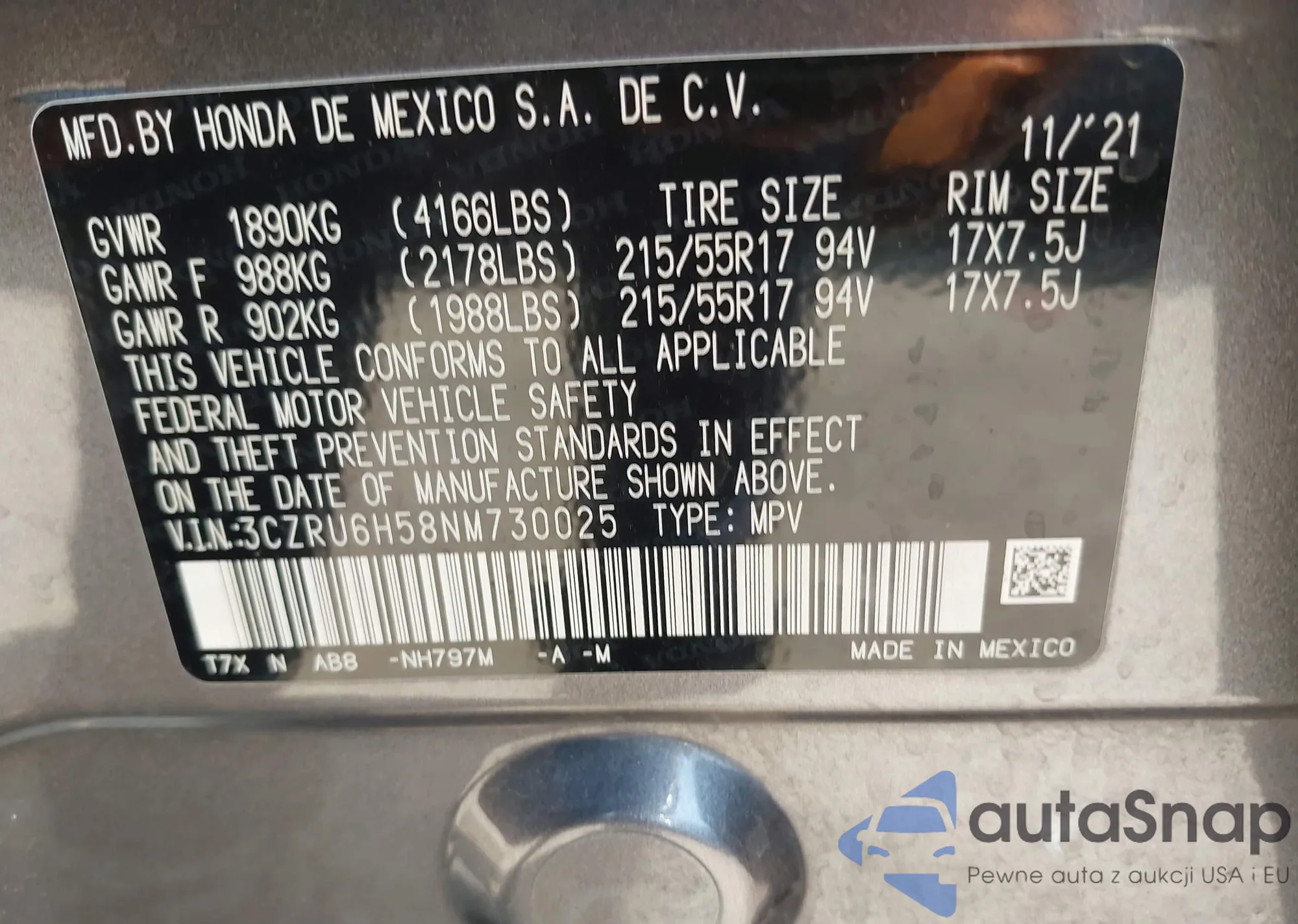 • VIN 3CZRU6H58NM730025