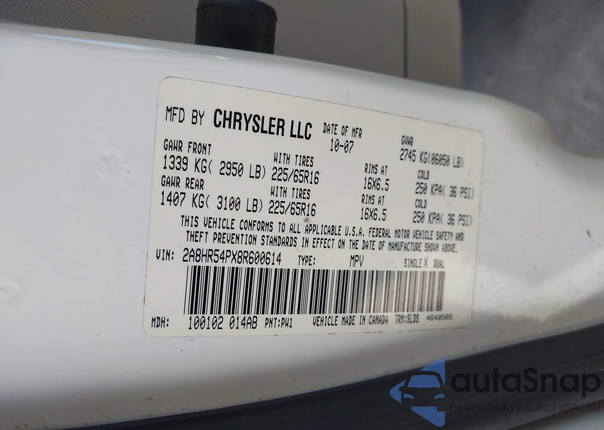 • VIN 2A8HR54PX8R600614
