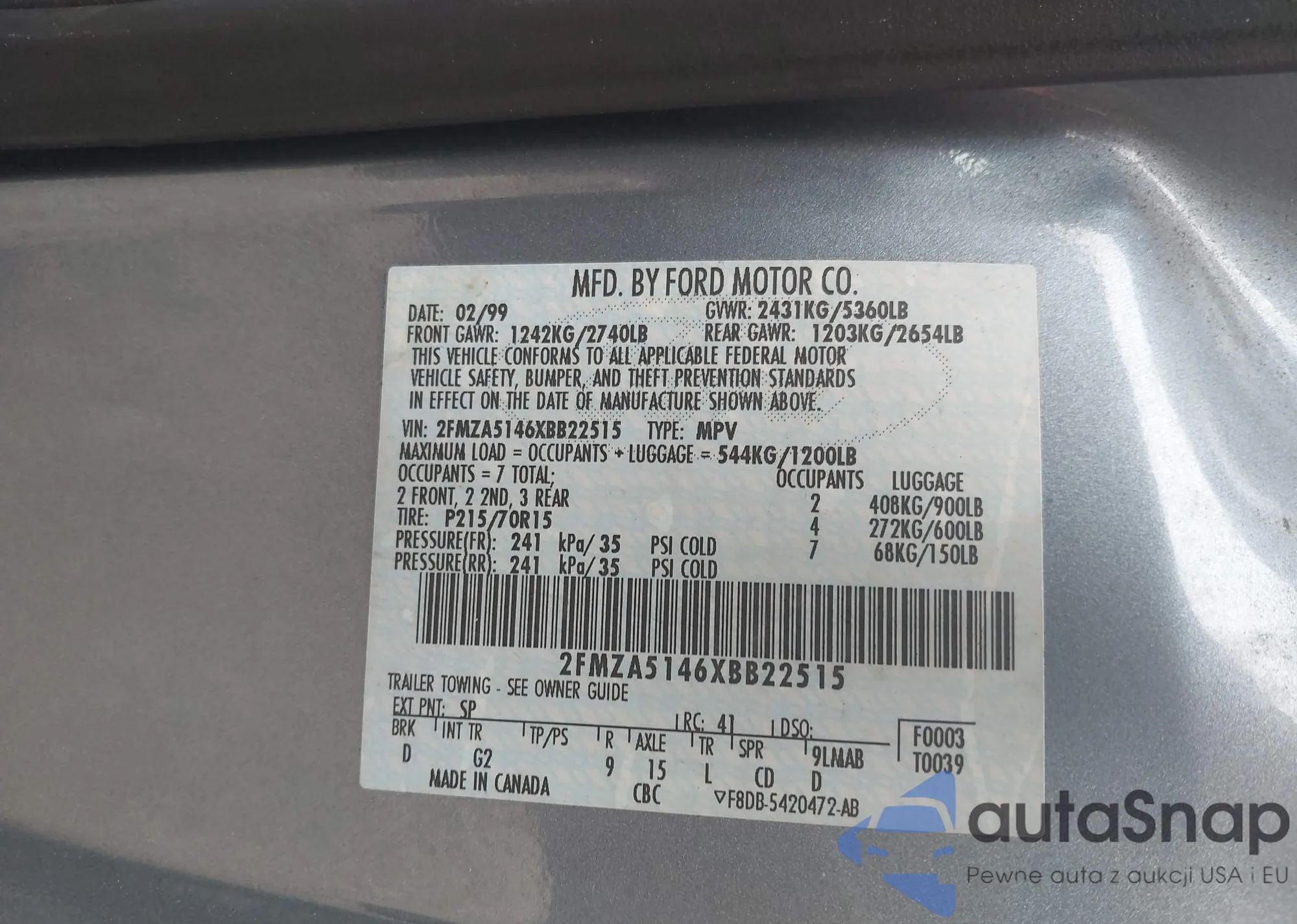 • VIN 2FMZA5146XBB22515