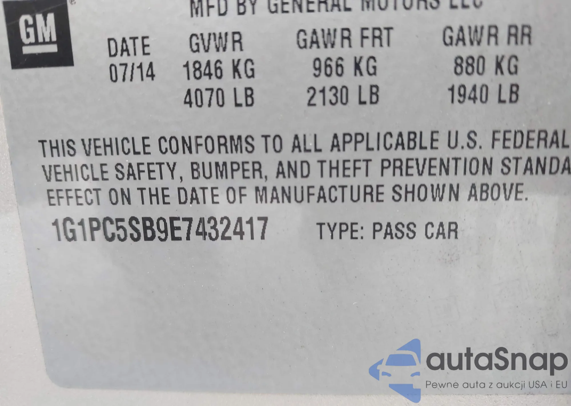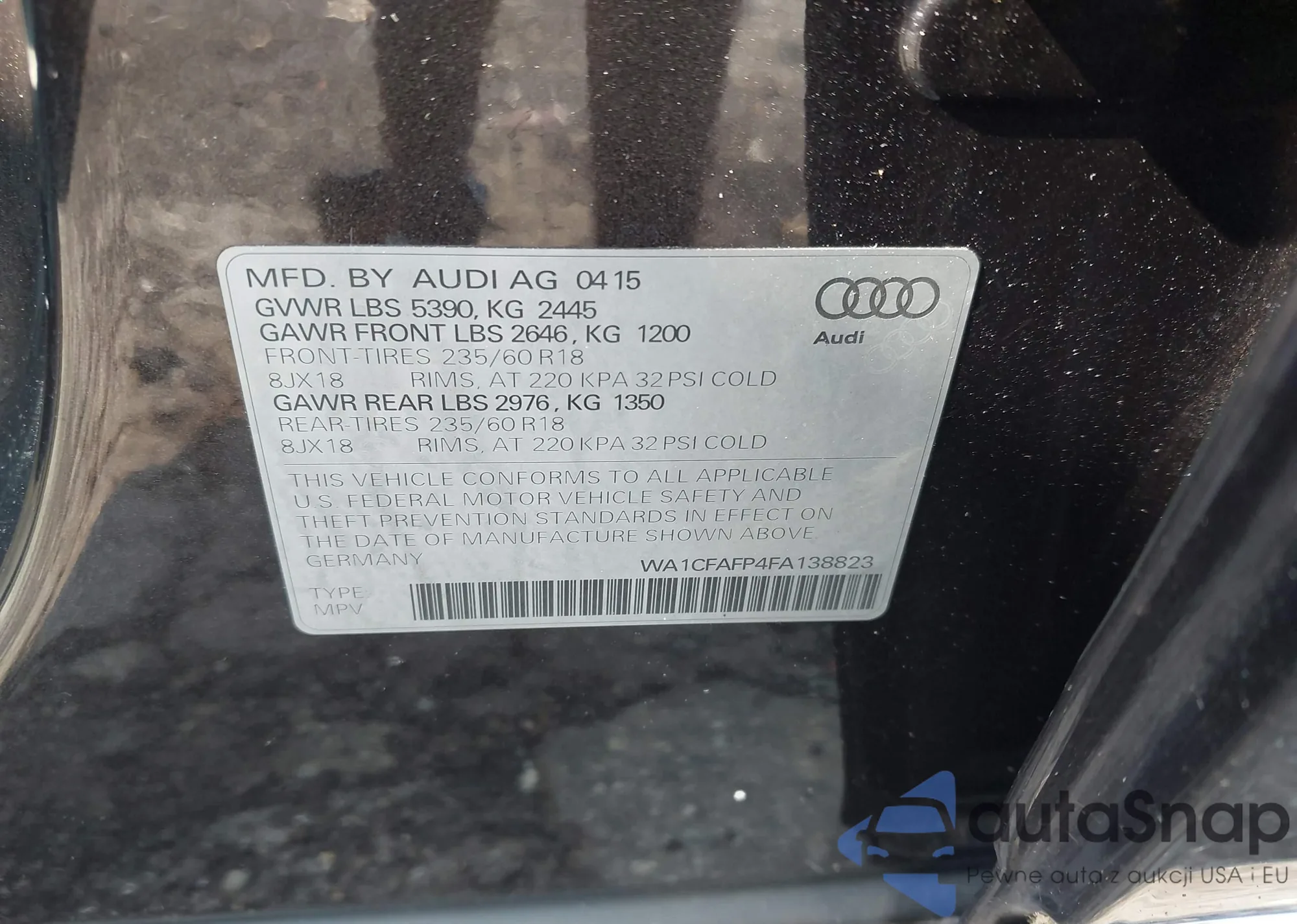 LOT: 42387857 VIN: WA1CFAFP4FA138823