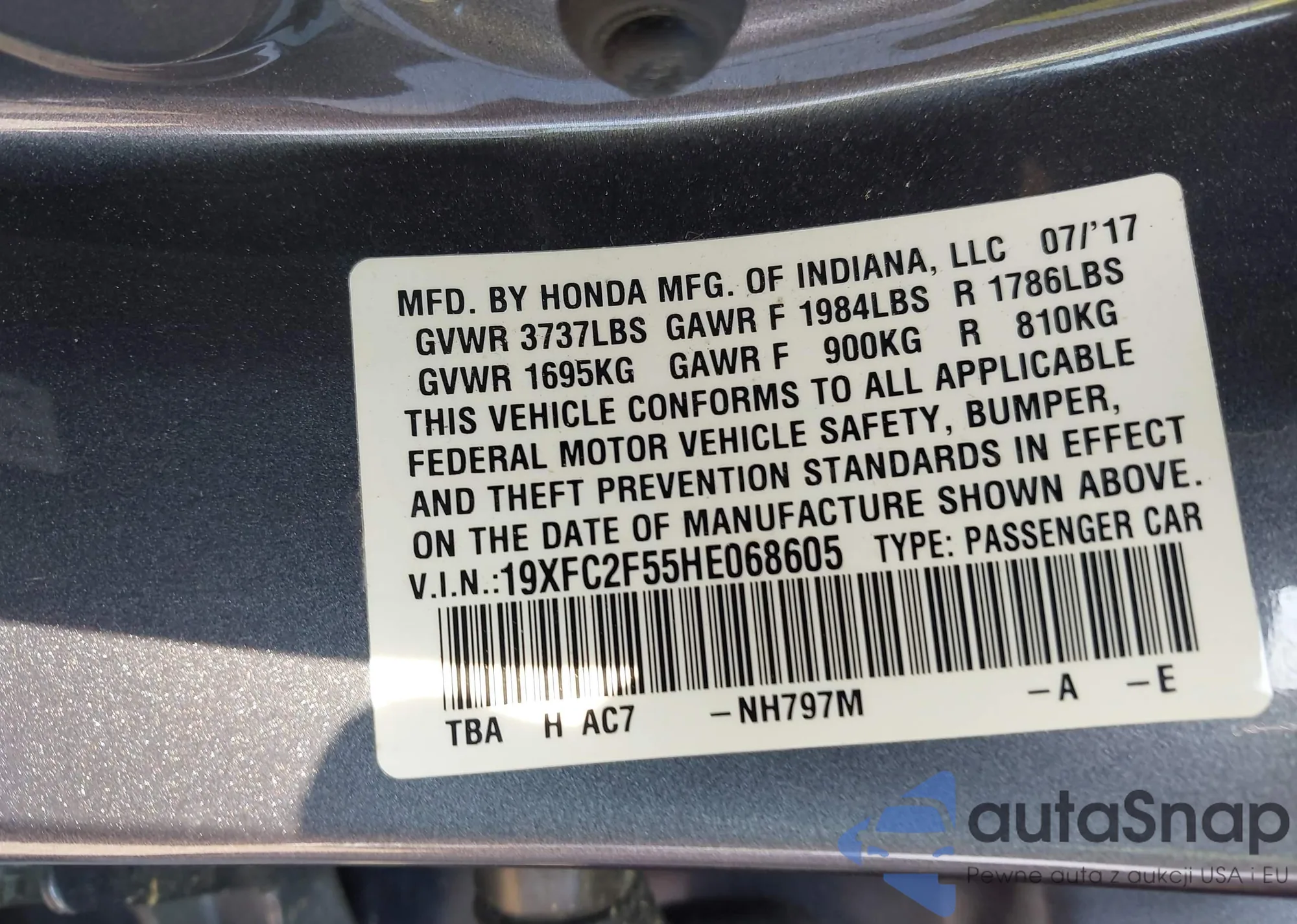 • VIN 19XFC2F55HE068605