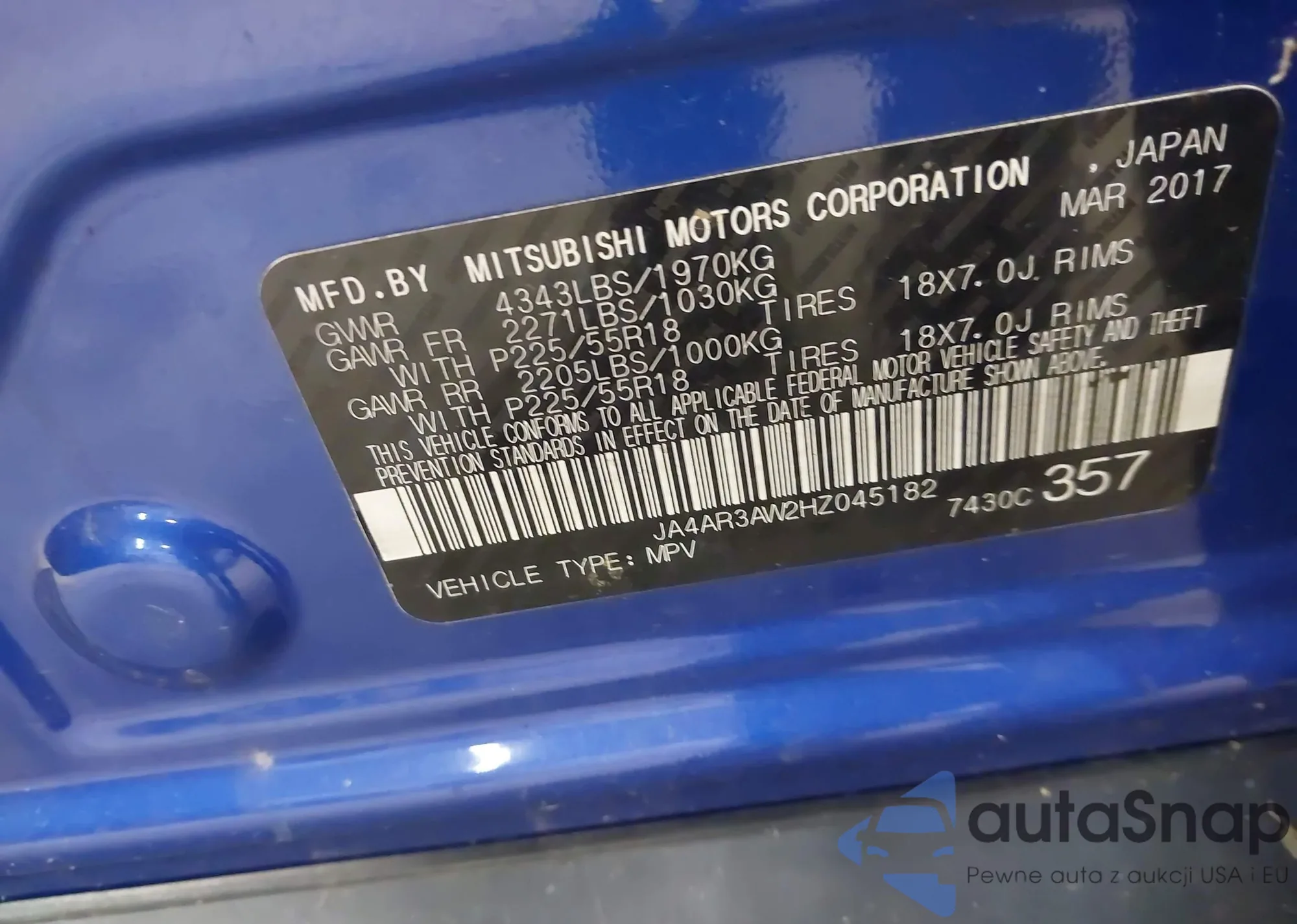 • VIN JA4AR3AW2HZ045182