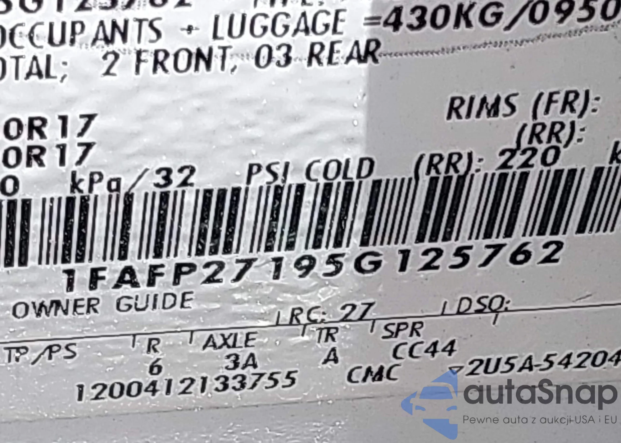 LOT: 42710476 VIN: KNAFK4A62F5386122