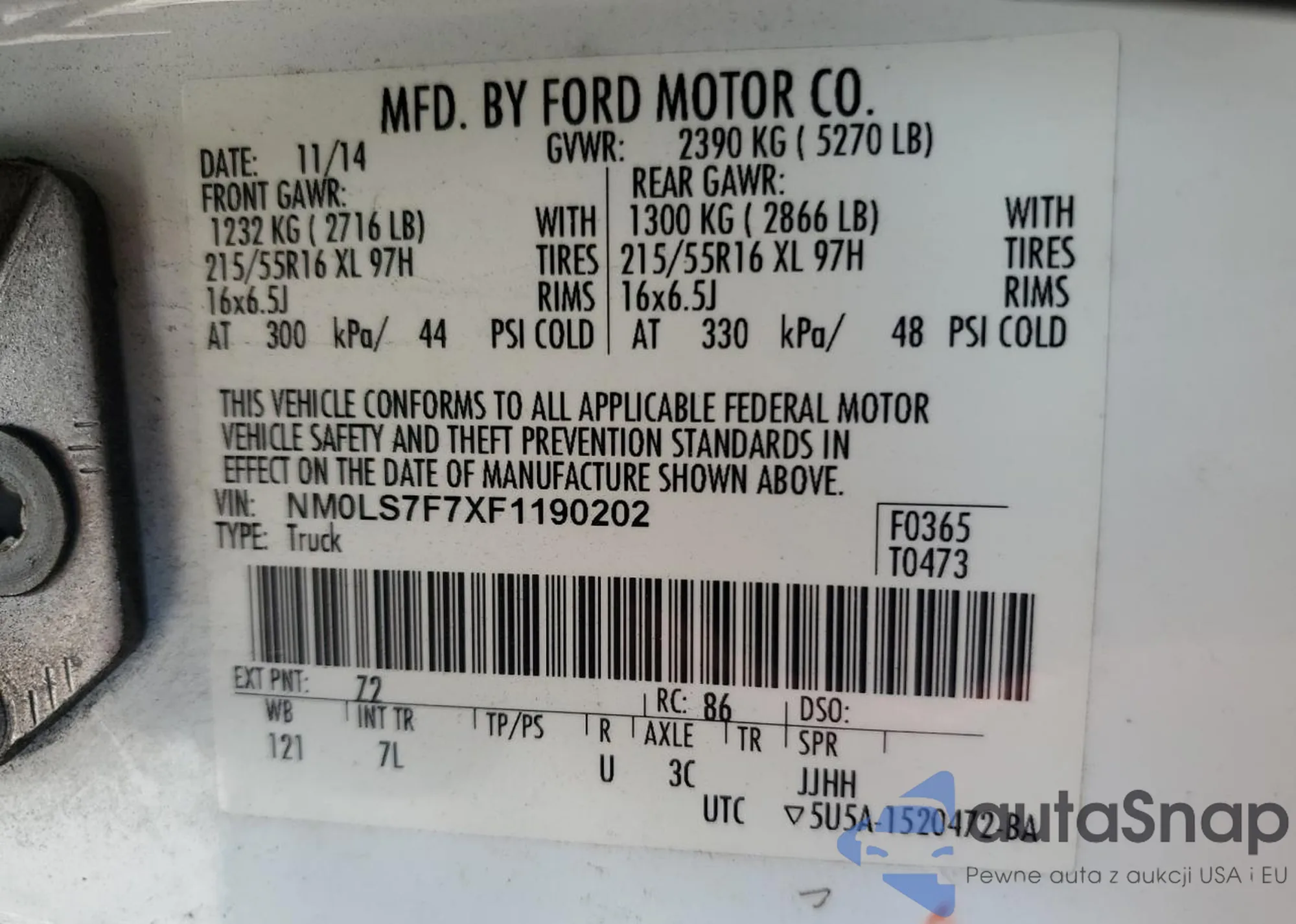 LOT: 63536205 VIN: NM0LS7F7XF1190202