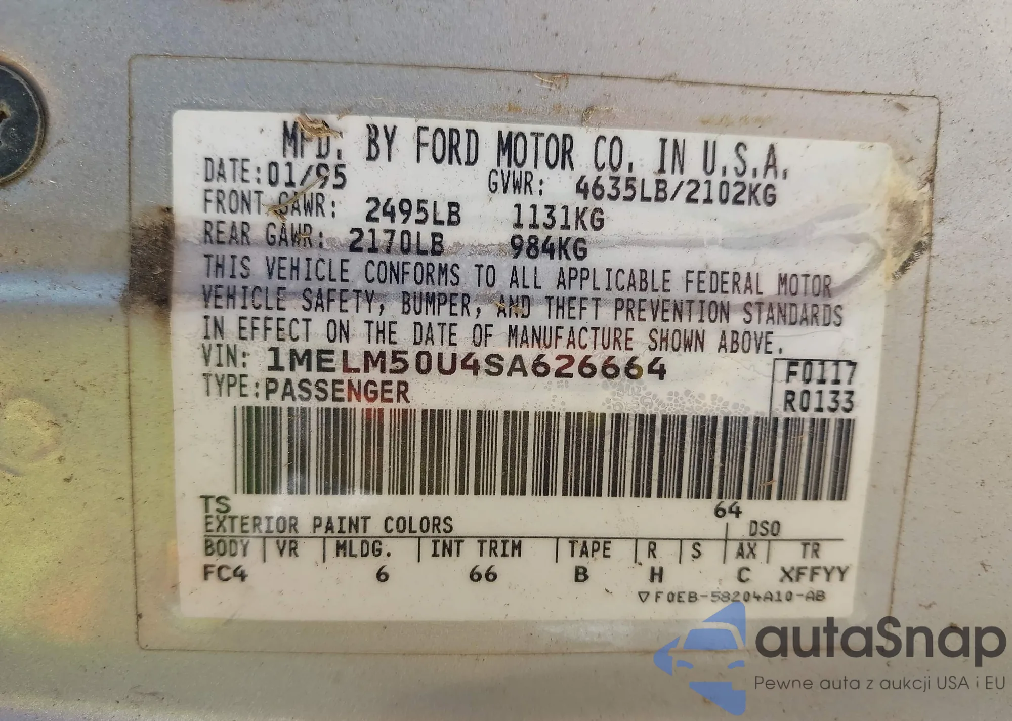 • VIN 1MELM50U4SA626664