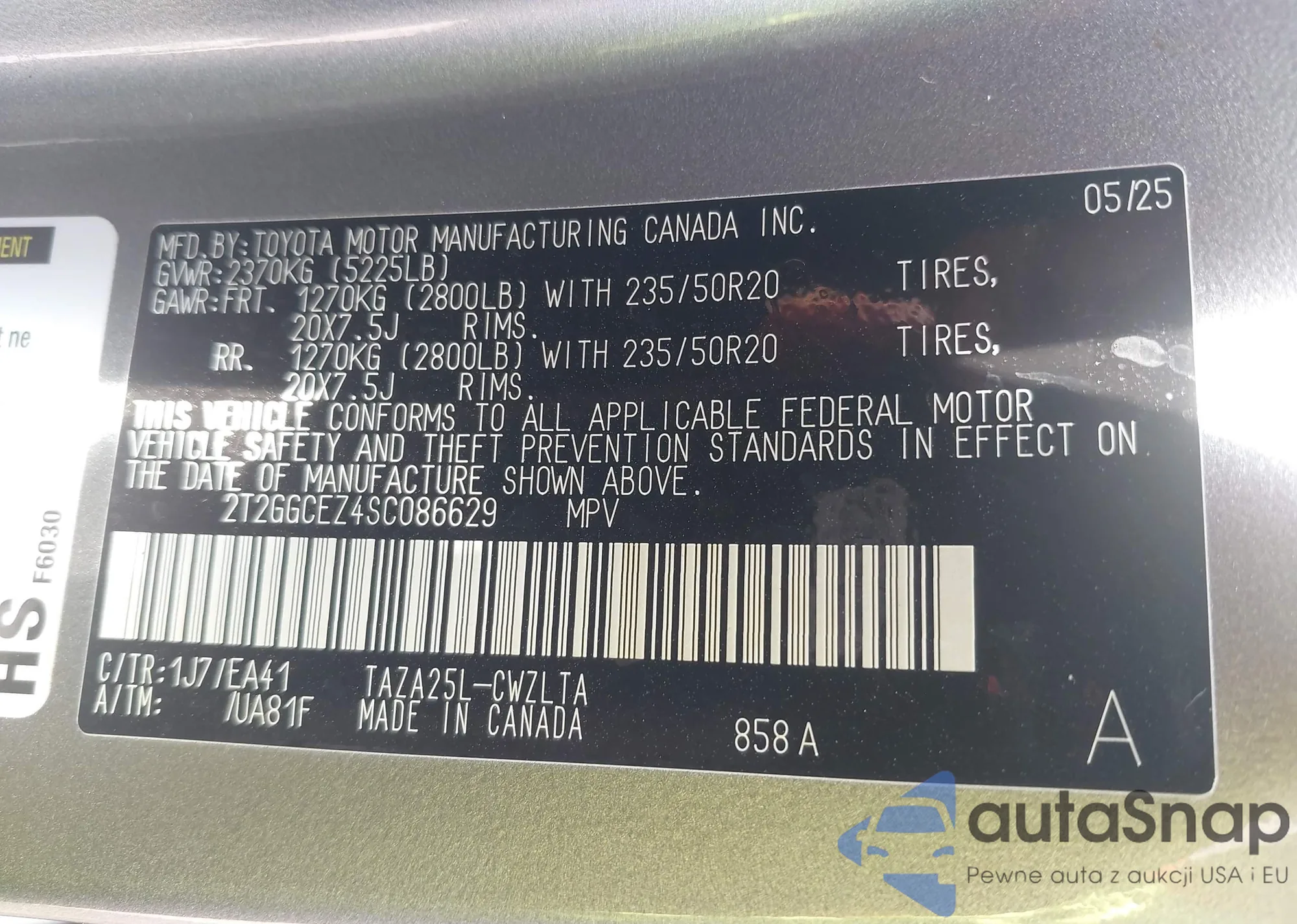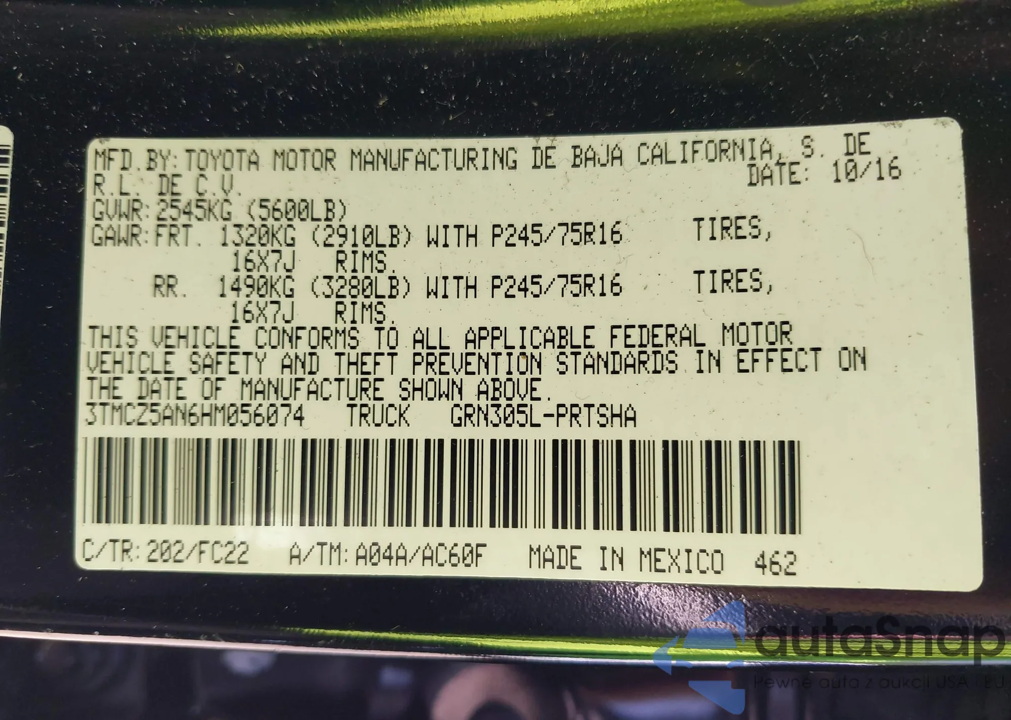 • VIN 3TMCZ5AN6HM056074
