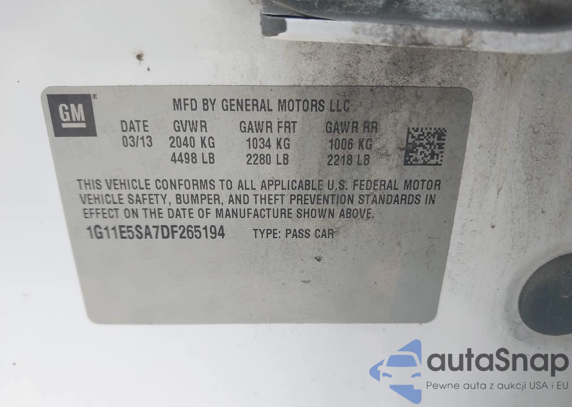 LOT: 42692795 VIN: 1G11E5SA7DF265194