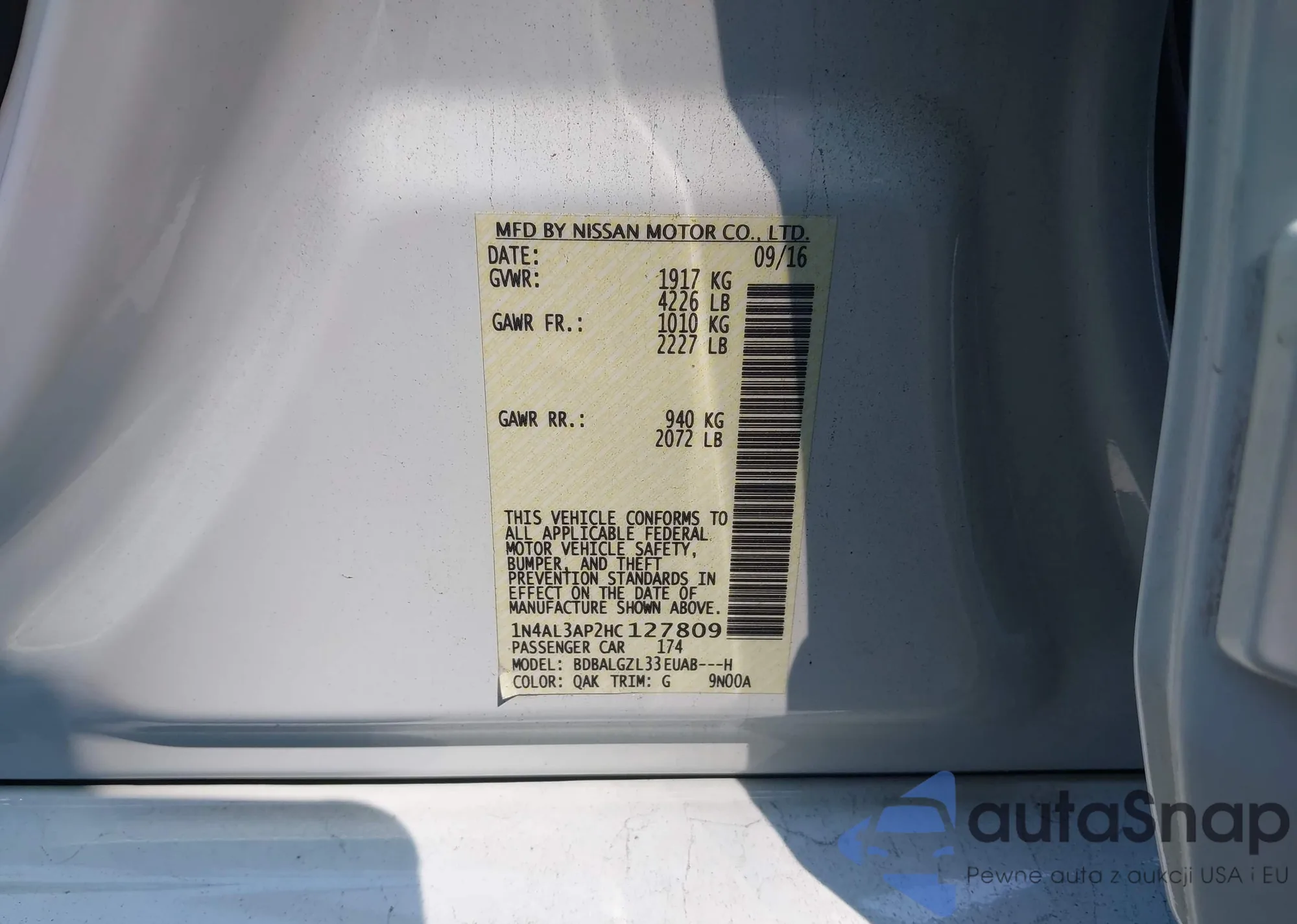 LOT: 42830273 VIN: 1N4AL3AP2HC127809