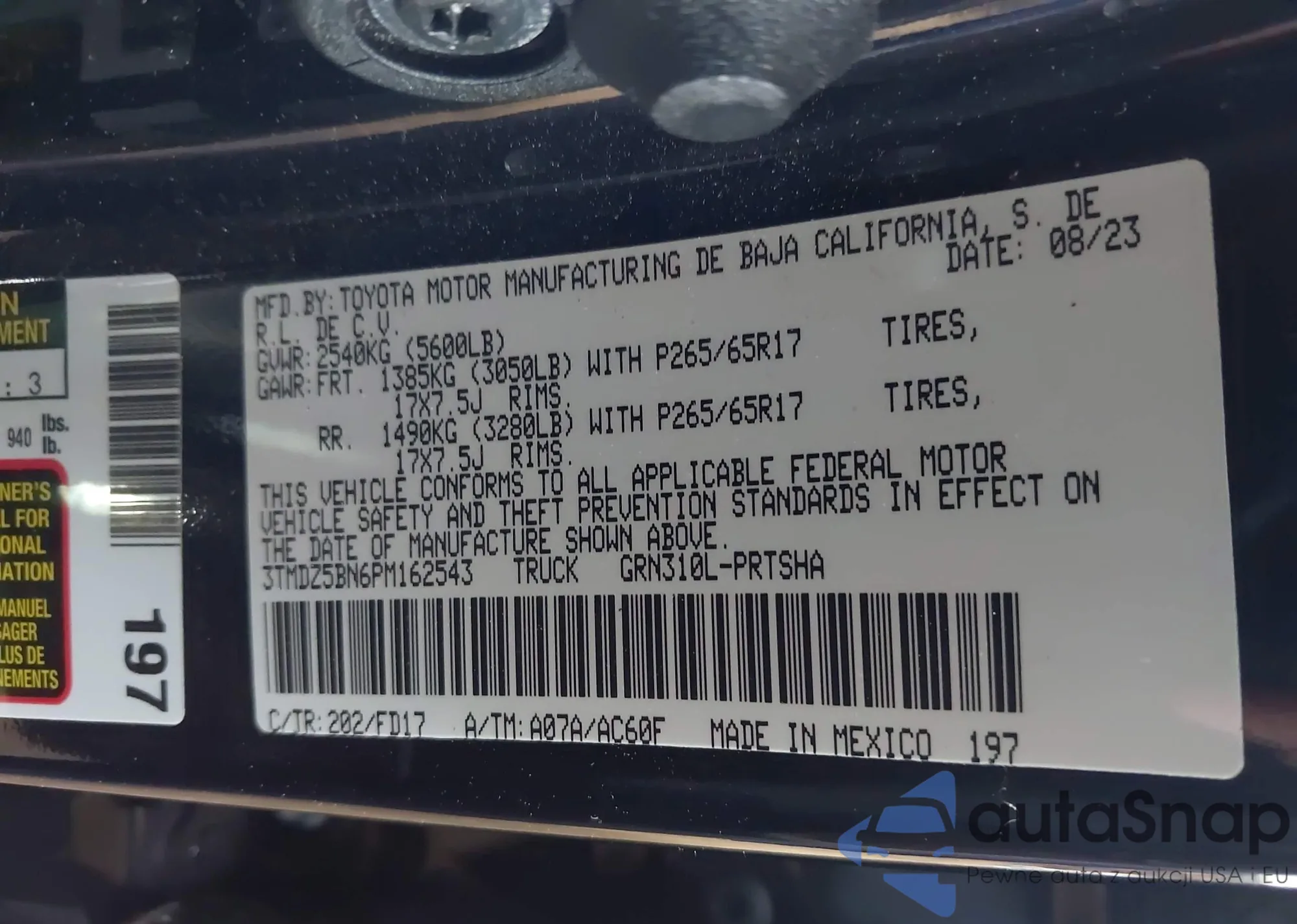 LOT: 42782924 VIN: 3TMGZ5AN9PM538523