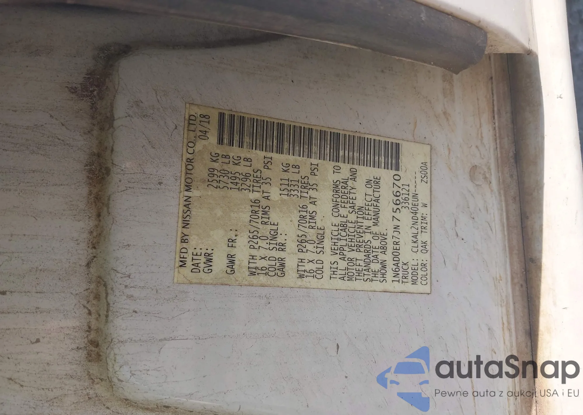 LOT: 42775736 VIN: 1N6AD0ER7JN756670
