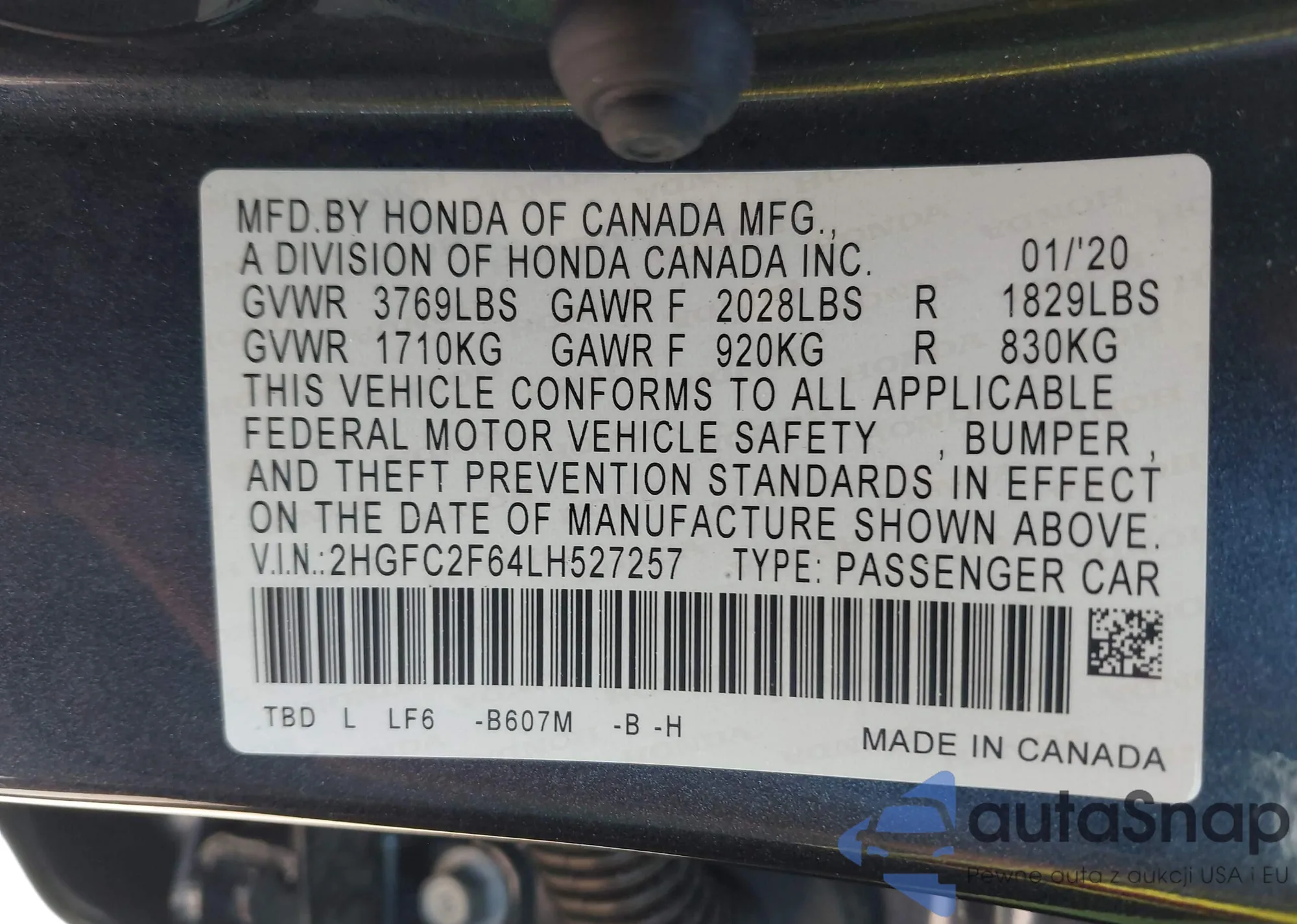• VIN 2HGFC2F64LH527257