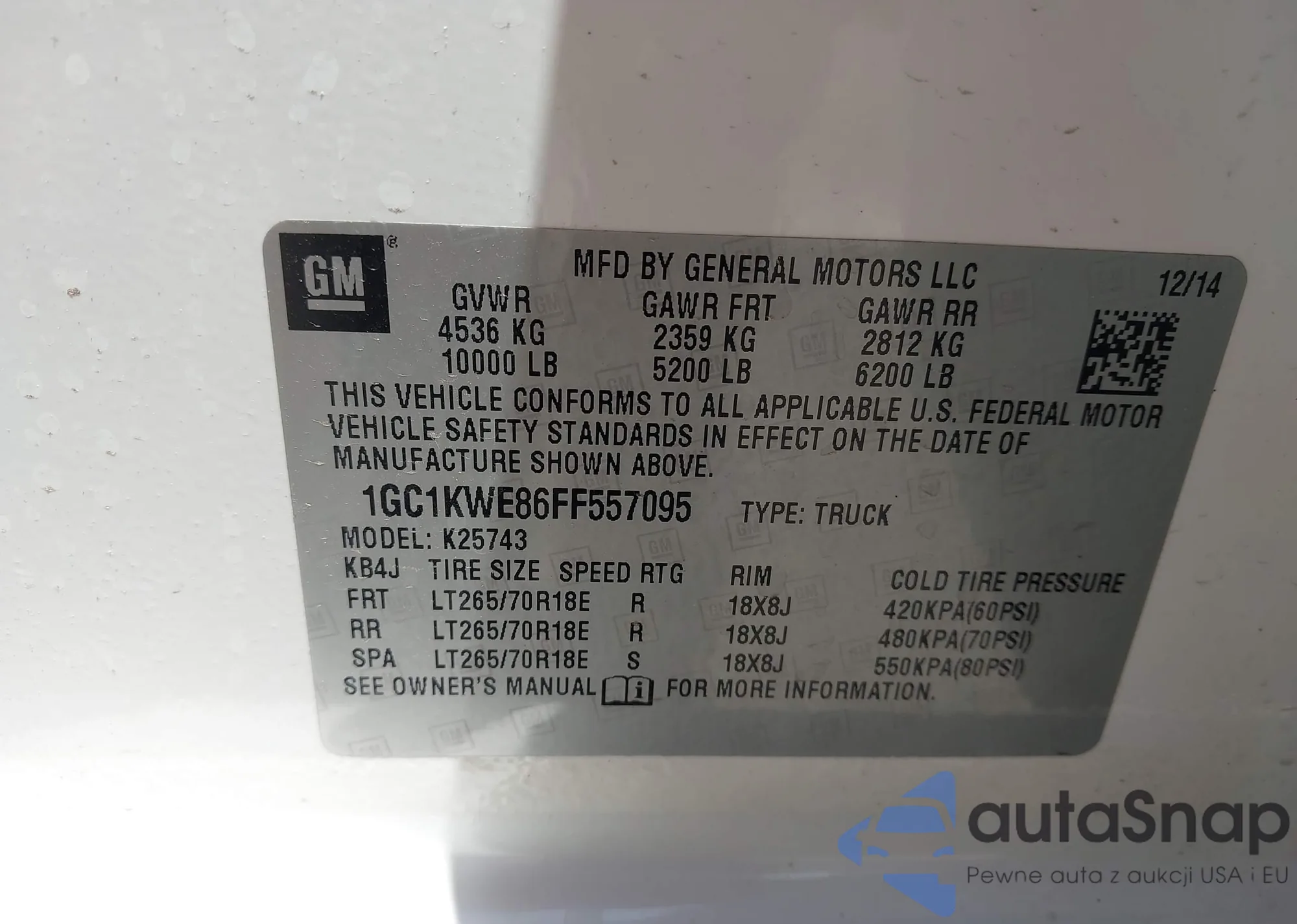 • VIN 1GC1KWE86FF557095