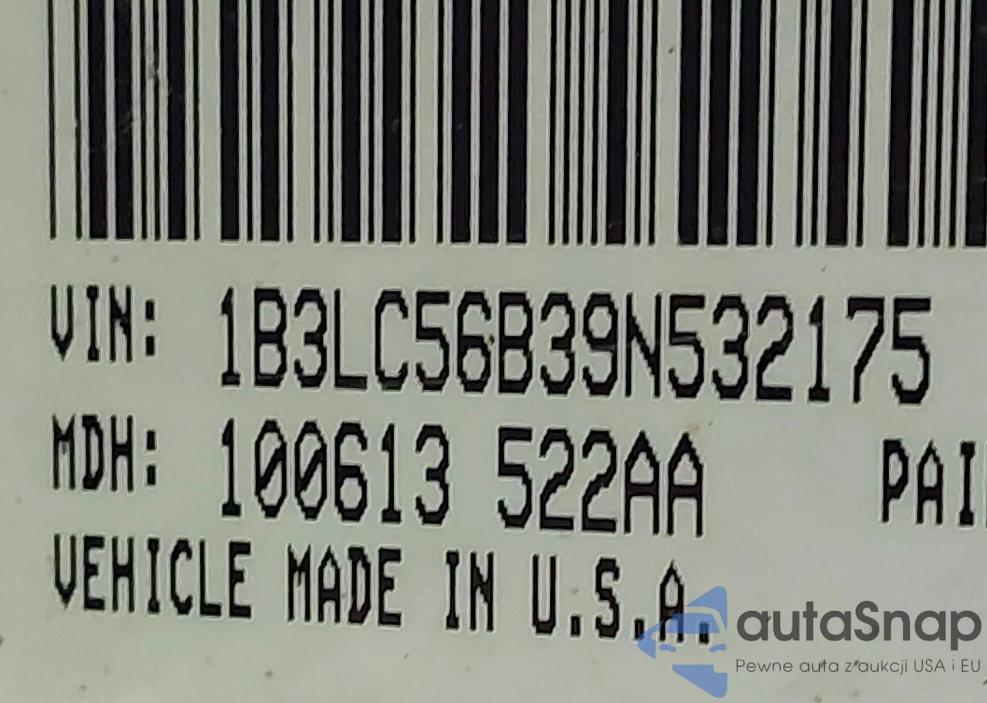 LOT: 42797794 VIN: 1B3LC56B39N532175
