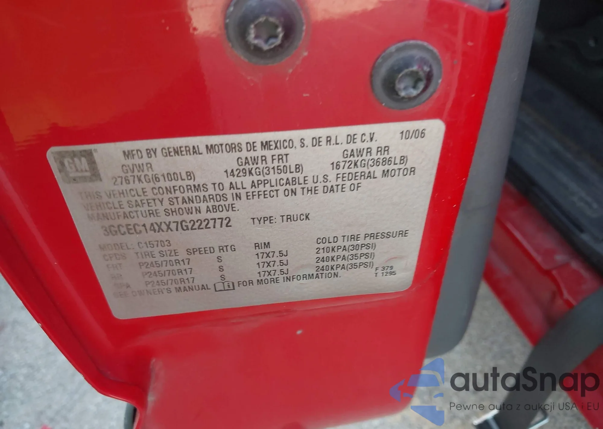 • VIN 3GCEC14XX7G222772