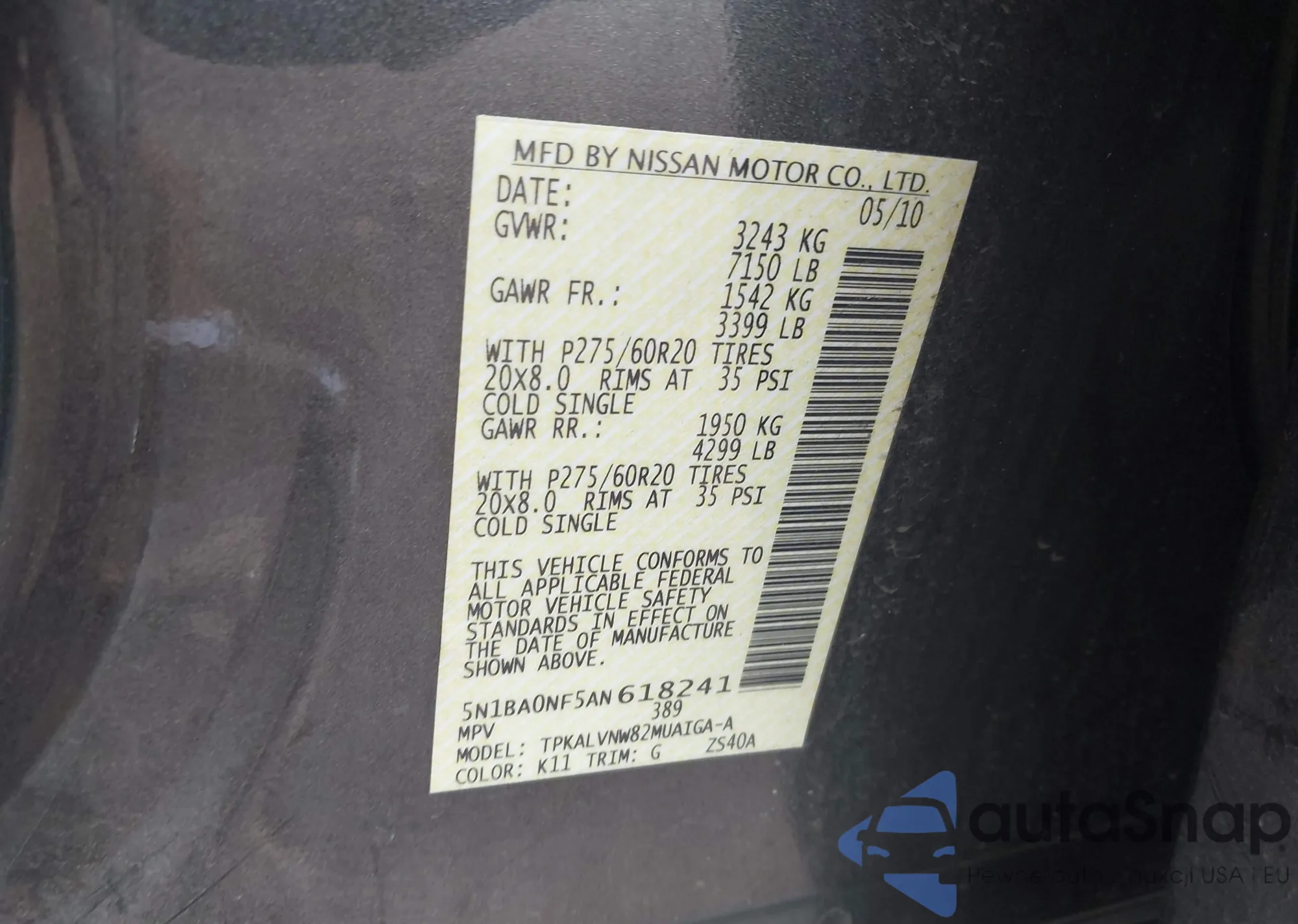 • VIN 5N1BA0NF5AN618241