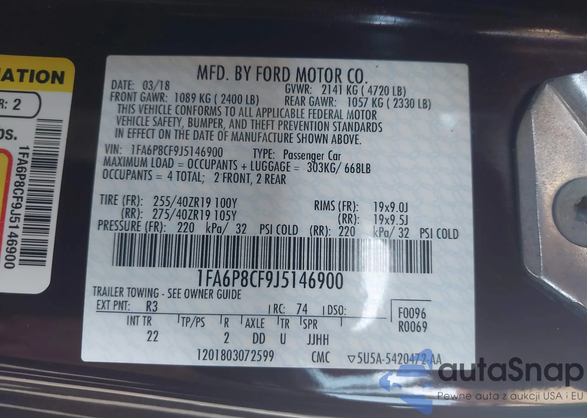 • VIN 1FA6P8CF9J5146900