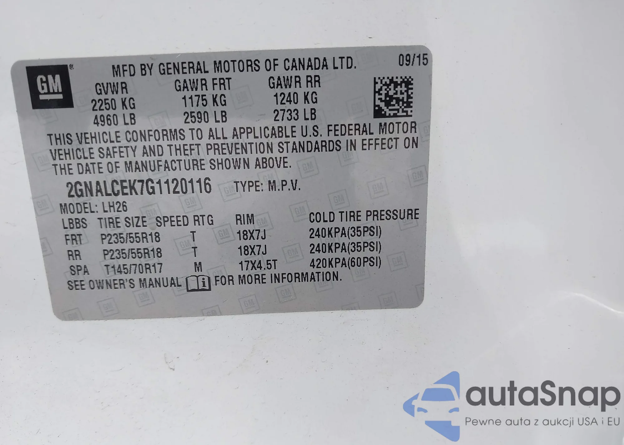 • VIN 2GNALCEK7G1120116